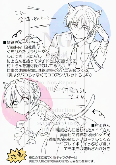#みすけっと #みすけっと2025 新刊はサラリーマンの雑紙さん(♂)と猫耳メイドの村上さん(♀)がイチャイチャするだけの妄想らくがき本です