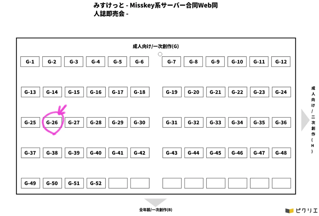 PICREA(ピクリエ)開催イベント 【みすけっと - Misskey系サーバー合同Web同人誌即売会 -】 に参加します! https://picrea.jp/event/c630fa554a3327d2a262e8705178781847b4d64a421fb94362214e718c4fb578