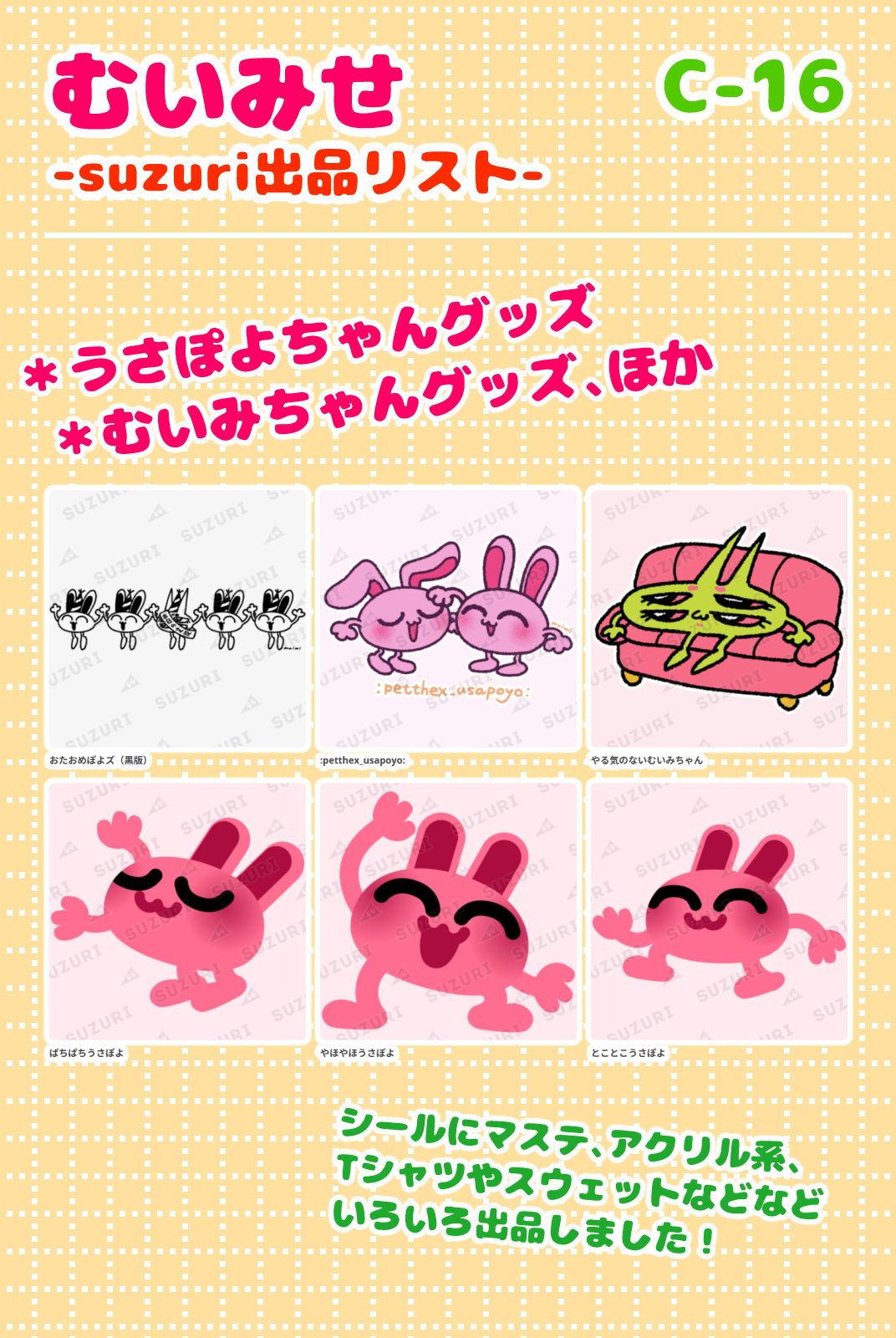 Boothにてイラスト本と漫画の販売を、suzuriにてうさぽよグッズを販売します