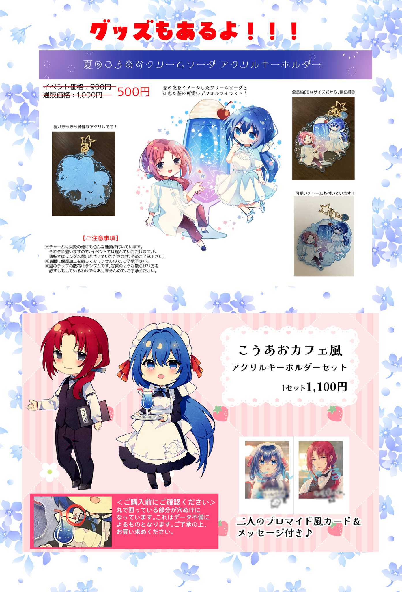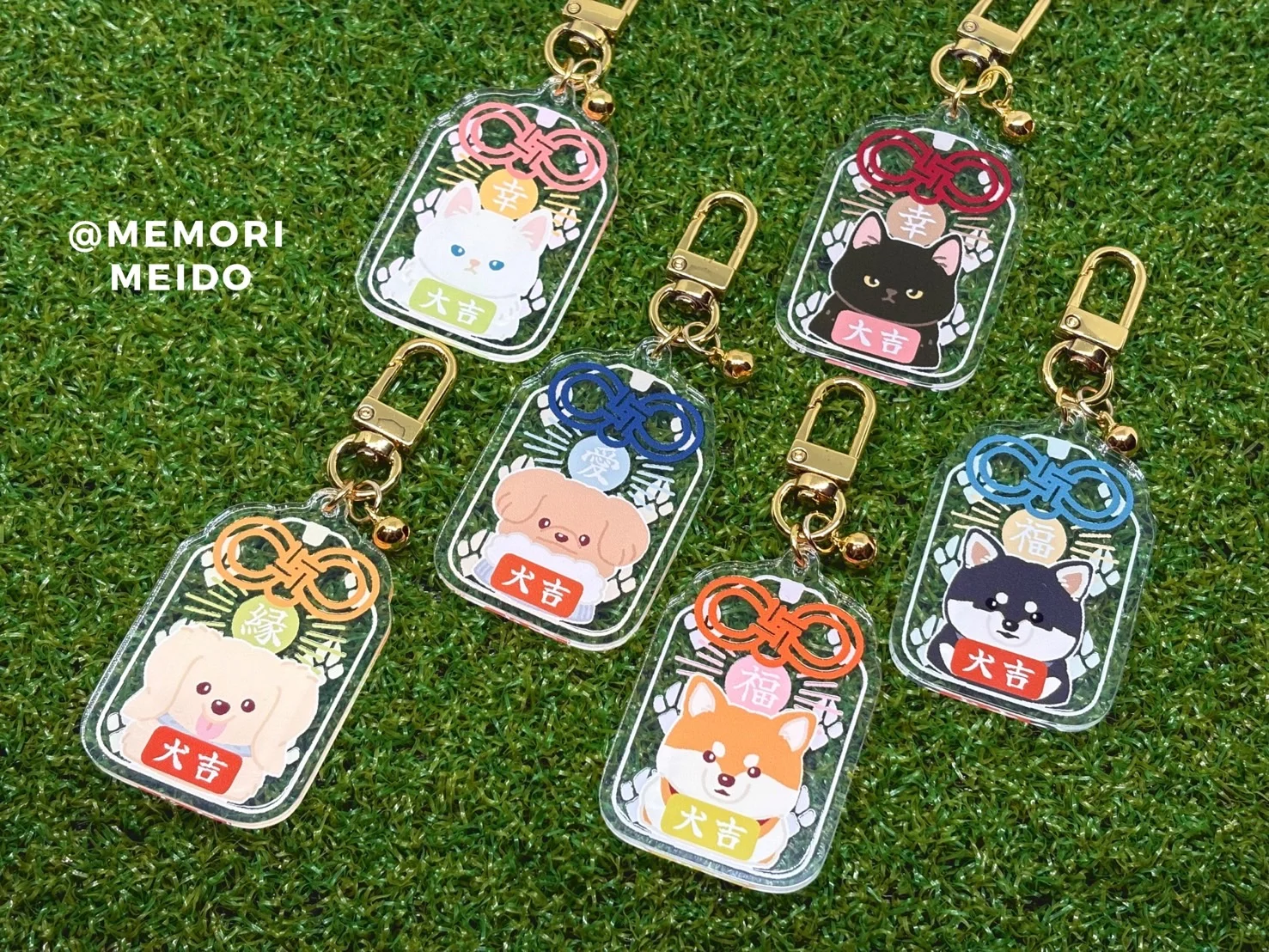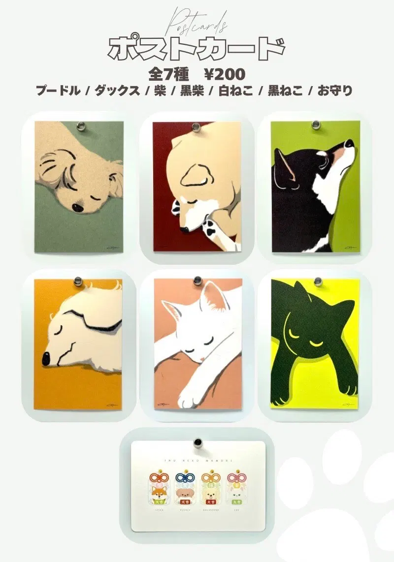 犬と猫のグッズ「お守りアクキー」と「おひるねポスカ」を置いてます!