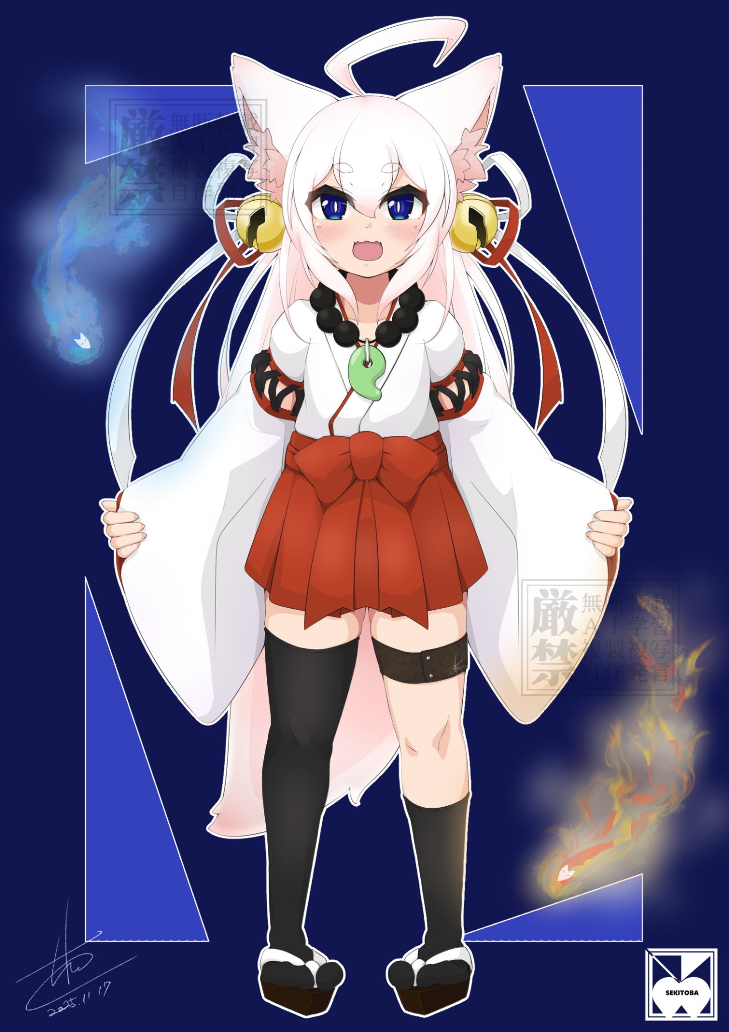 新年らしく晴れ着姿で出世魚のブリを抱えるオリキャラの鈴木風子ちゃんを描きました🐟