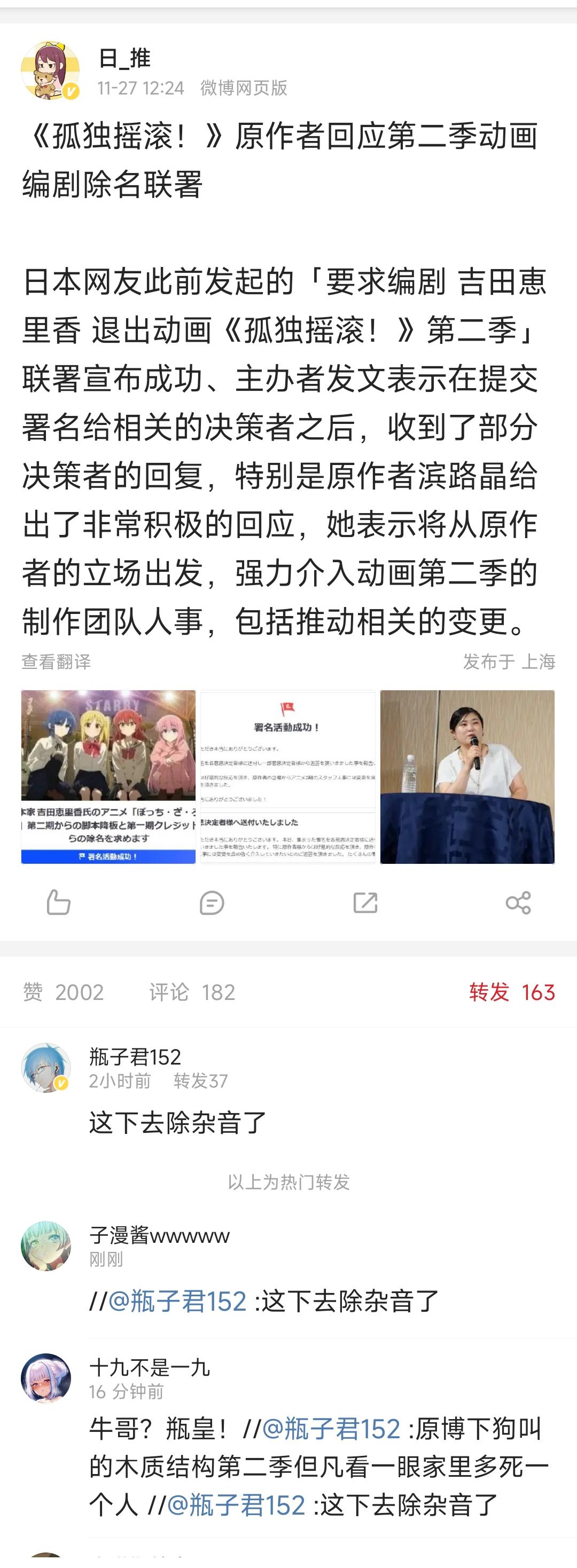 (关于什么是“孤独摇滚编剧事件”,请见原新闻下的评论之图二。或自行了解更多内容)