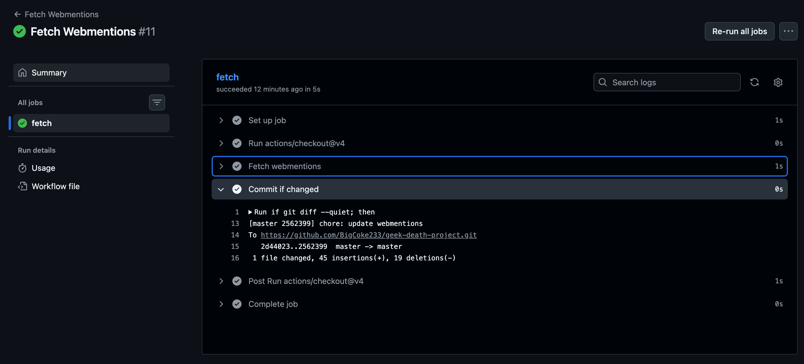 现在的解决方案是,用 GitHub Actions 每半小时从 webmention.io 拉取一次数据,以 JSON 格式存放在 `data` 目录下,Hugo 构建时直接使用已经被拉取到本地的数据。完美解决了上面提到的两个问题。