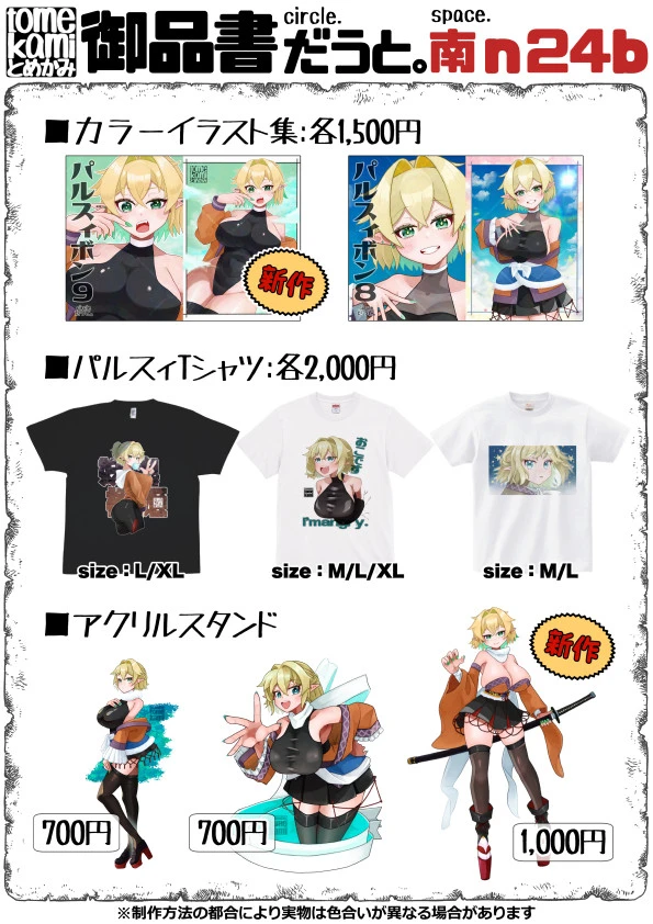 新作はイラスト集とTシャツです、閉会後の在庫はBOOTHに卸します。