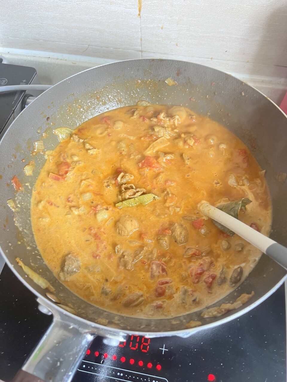 4. 加金桔和其他optional配菜(我加了胡萝卜因为喜欢它带来的调味),翻拌均匀,煮开后再小火焖30分钟