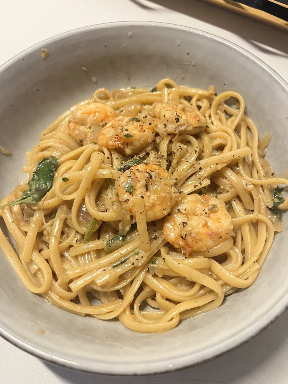 今天买了平菇和芦笋,加上冰箱里的洋葱、甜椒、鸡腿肉,一起做成春季感的时蔬奶汁意面。出锅后再往意面上擦些柠檬皮碎,滴几滴柠檬汁,意面更加清爽。其实应该用青柠,观感与香味更佳,但冰箱里黄柠檬得先消耗。