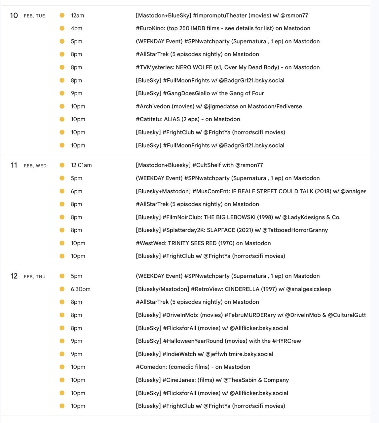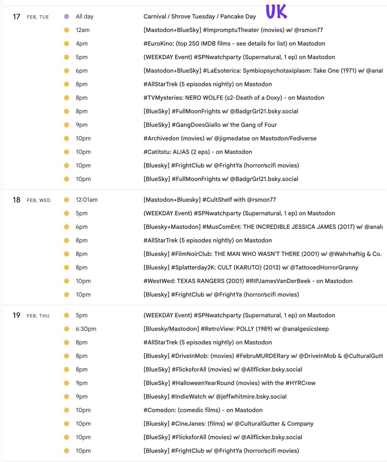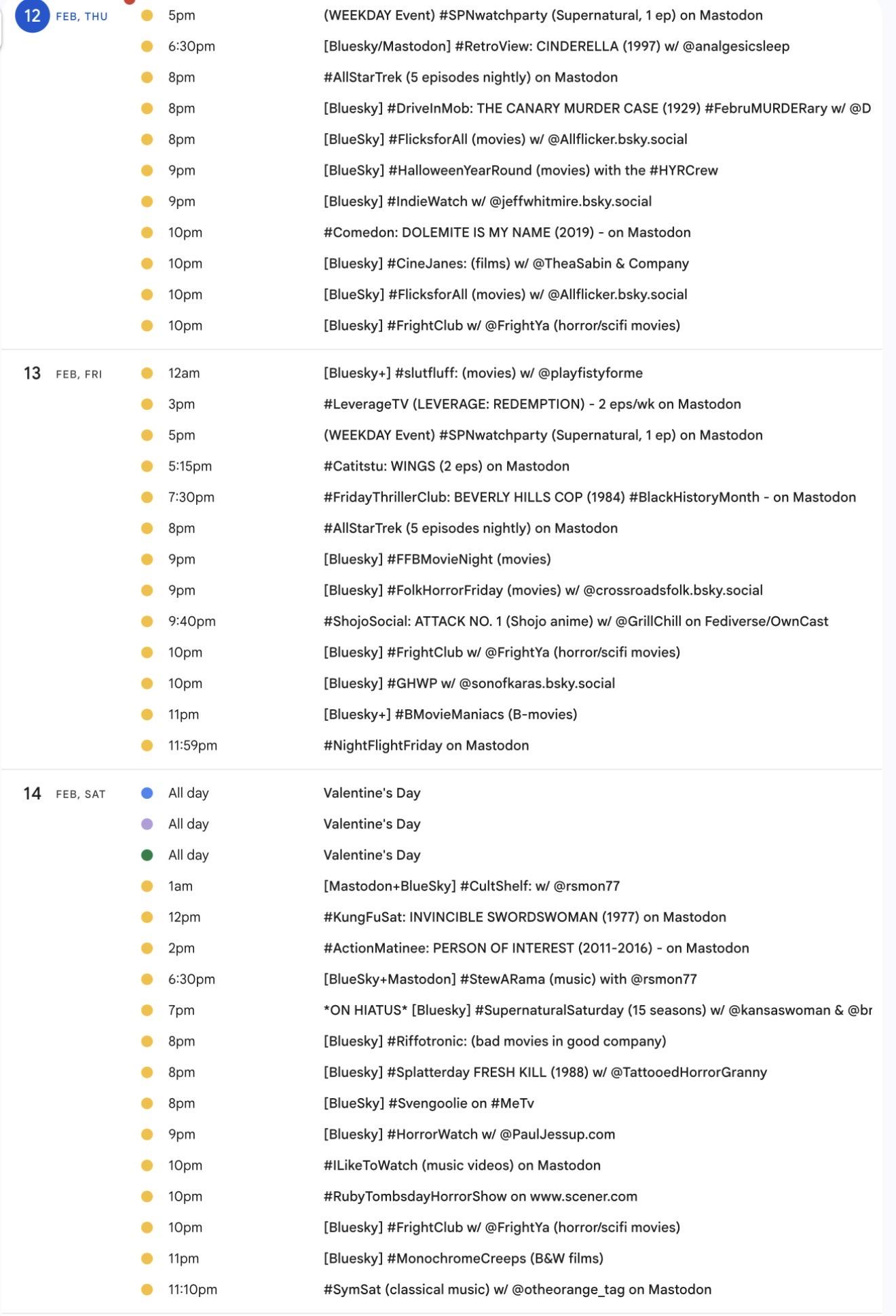 Happy February! 📺 It's the weekly #Mastodon/ #Fediverse #WatchPartyCalendar for 1/29-2/5 (Thu-Thu)
