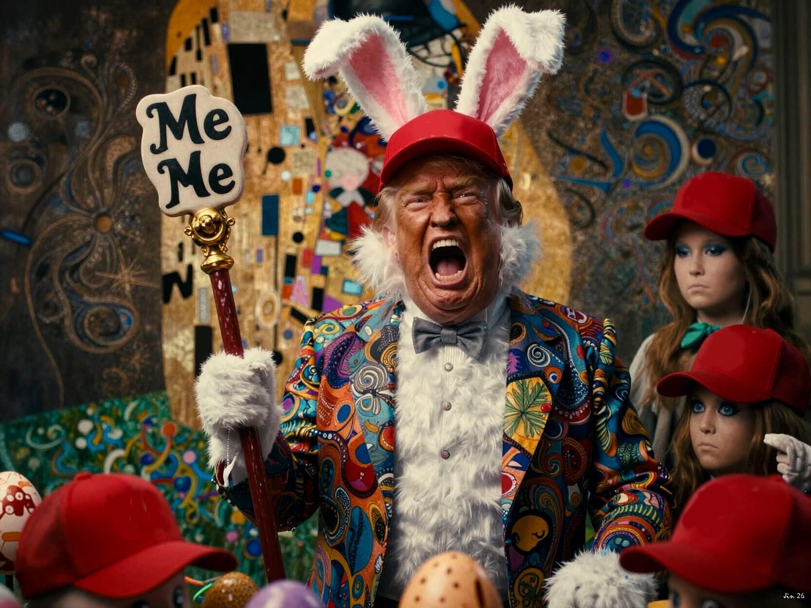 The Donnybunny prepares to bomb #Easter back to the Stone Age - how very Christian of him. #USFascism #Iran #AIart #cartoons