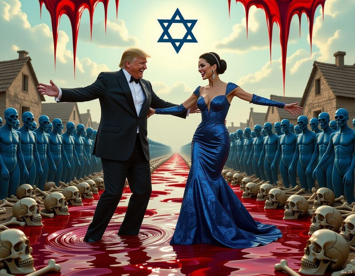 #Trumpigula practises his genocide tango. #ZionismIsWhiteSupremacy #USFascism #IsraelFascism #AIart