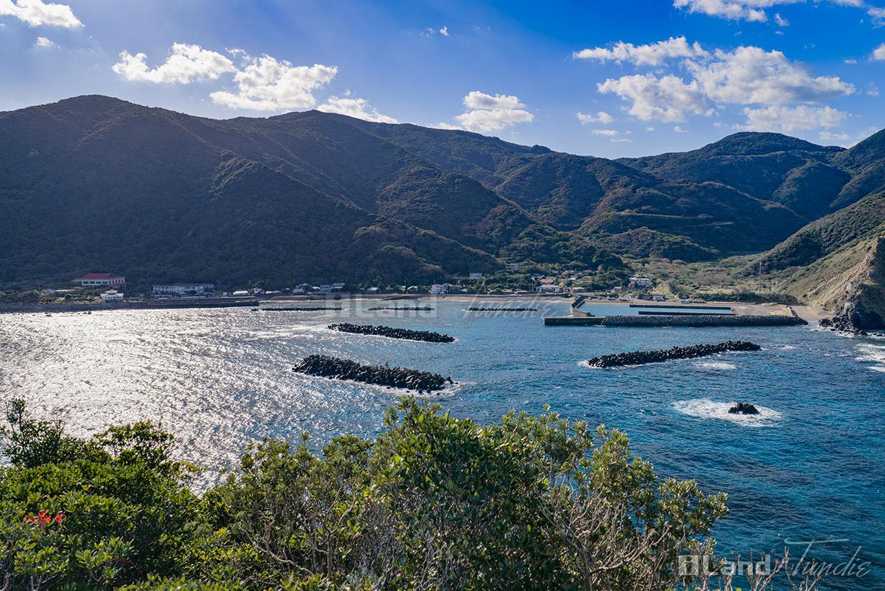 ベンチとリーフの絶景、加計呂麻島花富峠