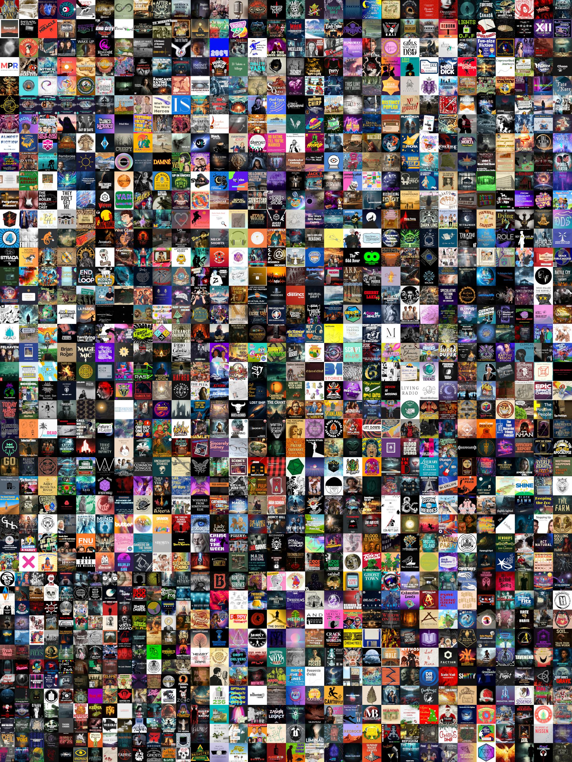 The Audio Drama Directory adds new audio drama articles every day. Throughout 2025, more than 1,200 new listings were added to the directory. Here is a collage showing all of them at once.