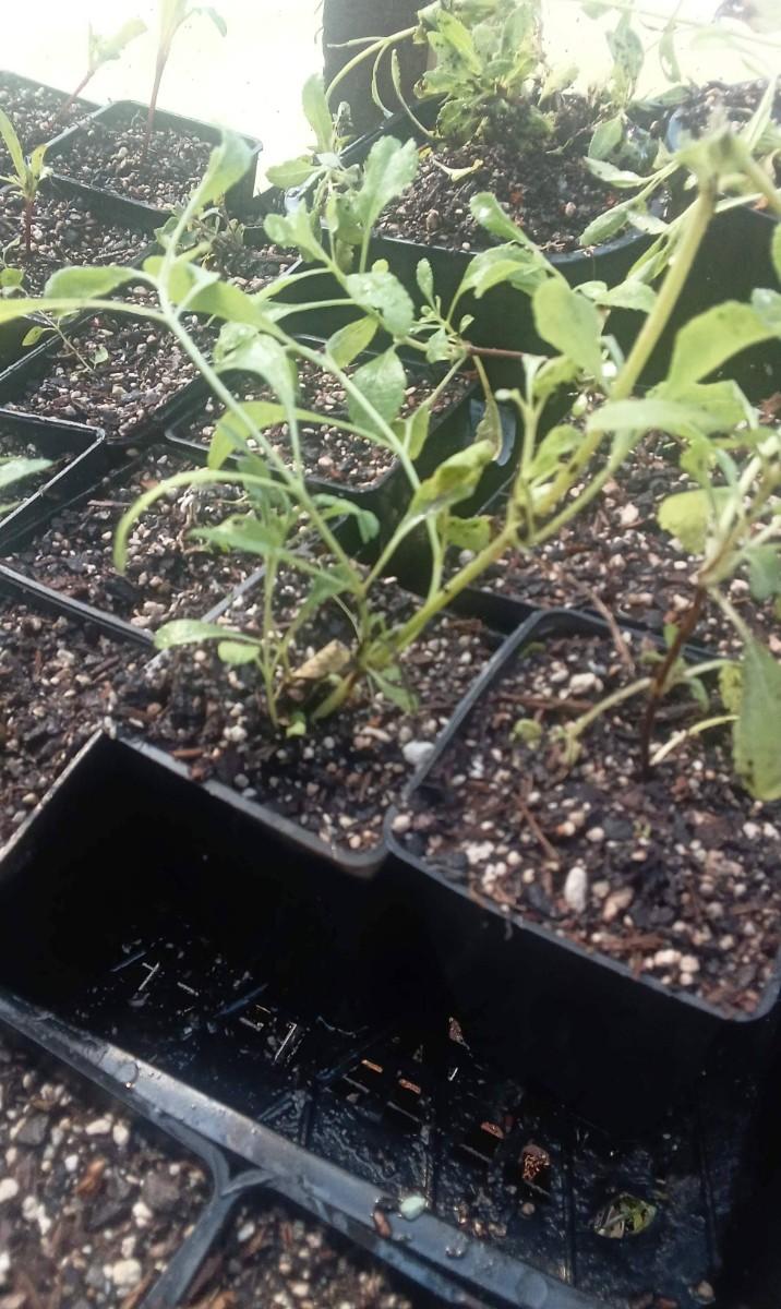 Some more green for your feed. Spent a few hours in the greenhouses yesterday doing some cleanup and shifting herbs and flowers from start trays to pottles where they will overwinter before heading outdoors.