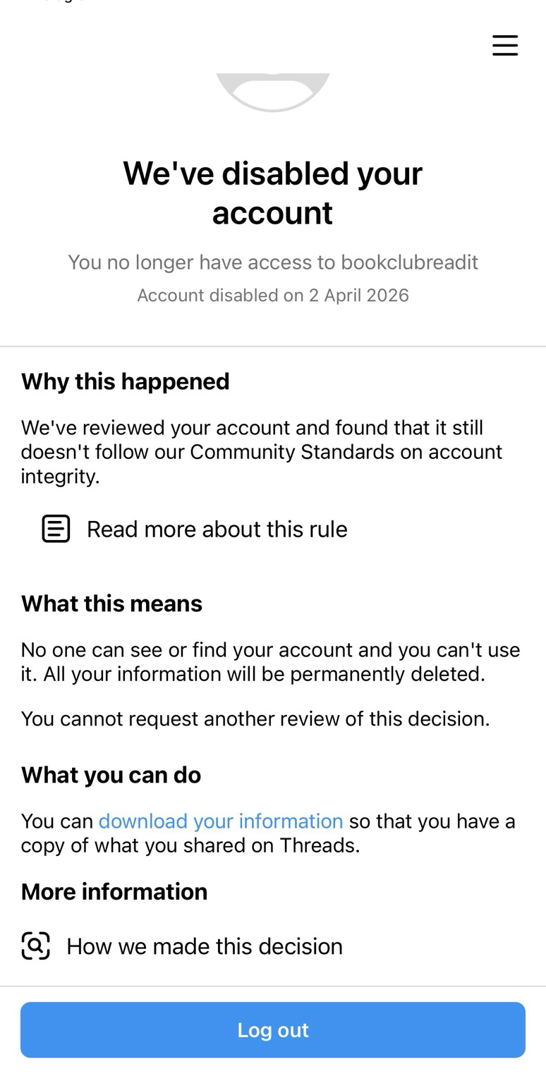 After less than a month on Threads, I finally got banned.