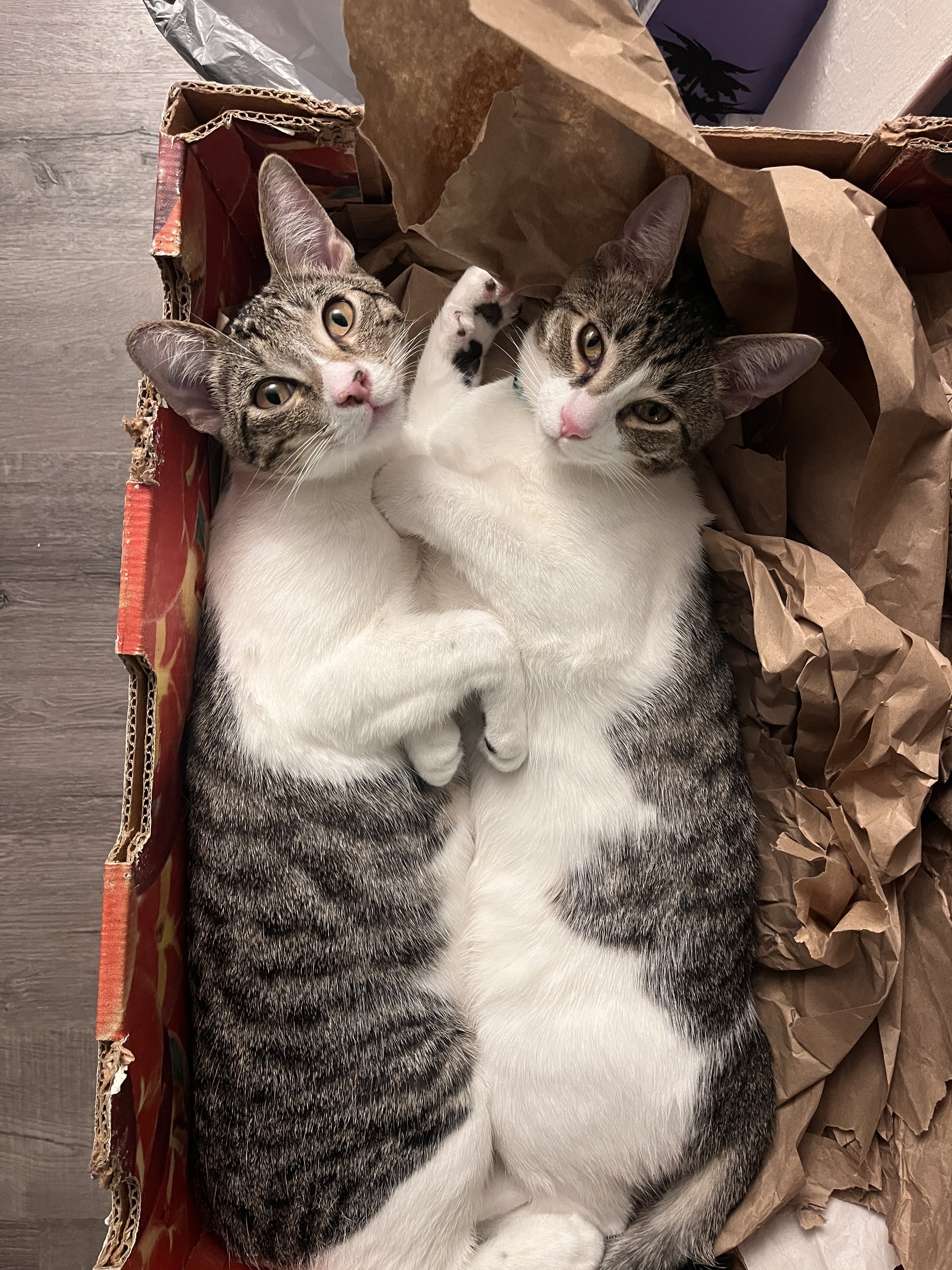 Welcoming two new kitties into the household this week. They won’t replace my son’s well-loved cats that went over the rainbow bridge or heal those holes in my heart. But it will help. These were adopted from the Orphan kitten project at UCD. Hand raised by volunteer UCD vet students. #cats. Now I need new names. So far the best ones are Calvin and Hobbes.