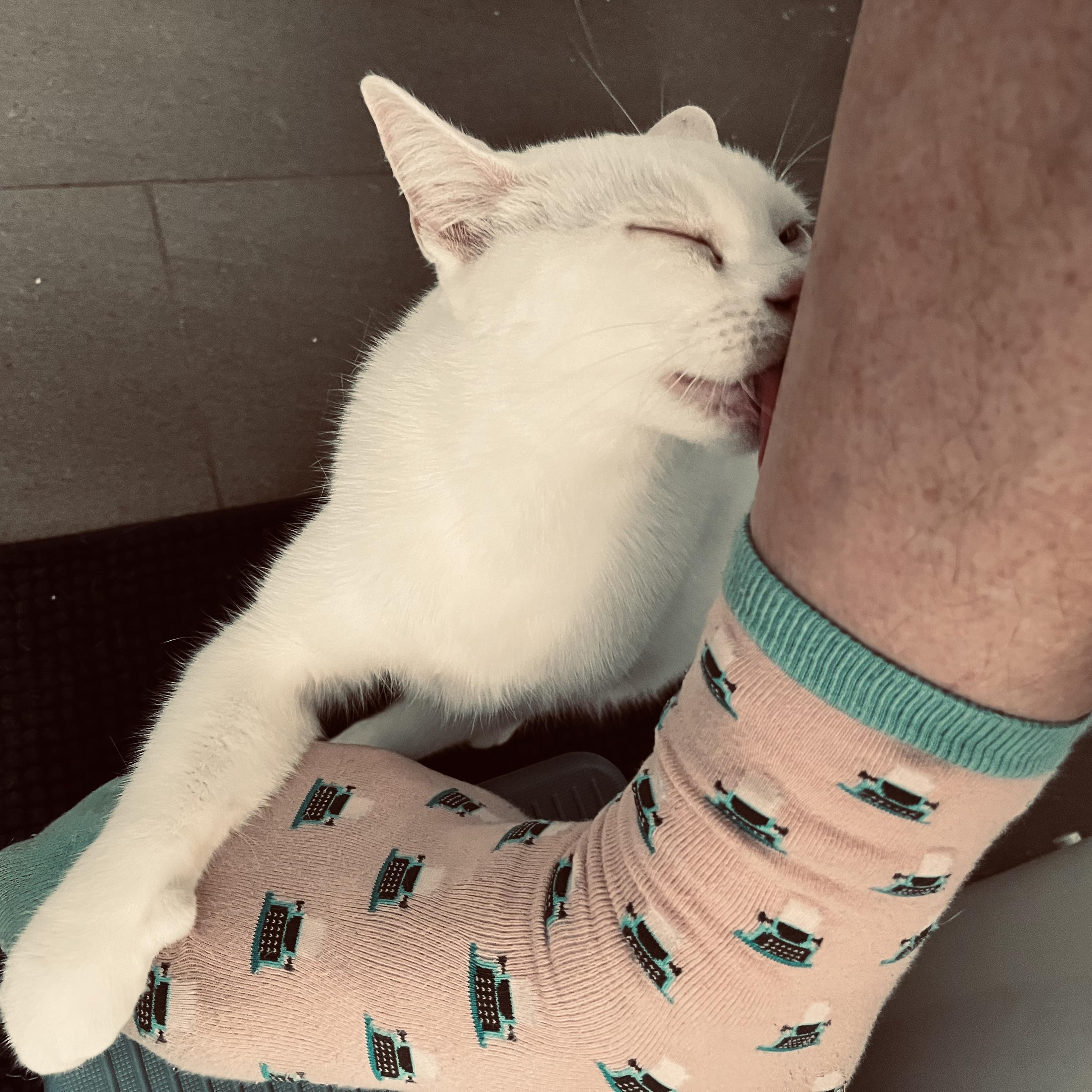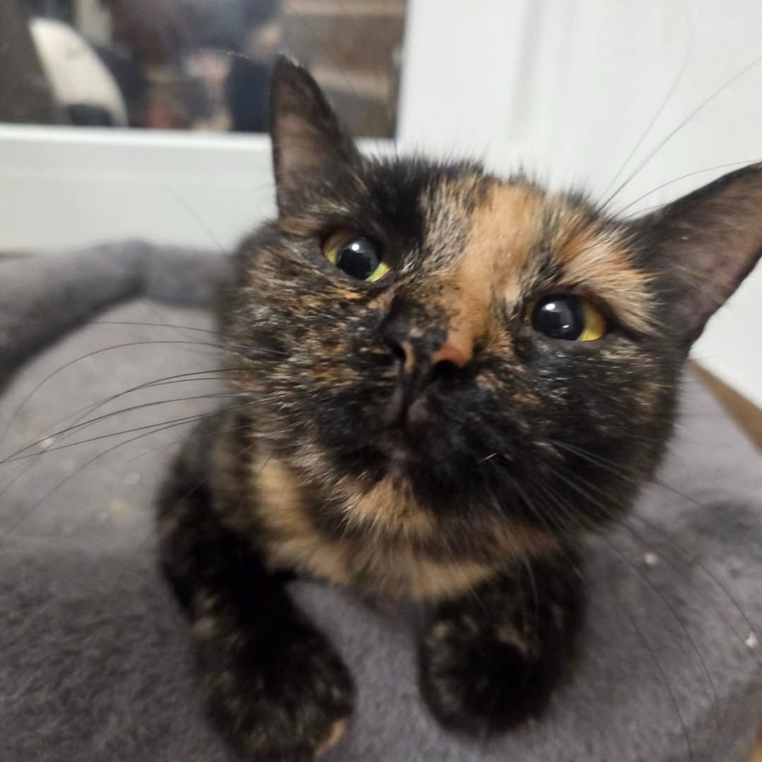 Meet Zena, a wobbly kitty of unknown reason. She is a slow moving methodical ooze of a cat and a severe opposite of her adoptive brother Squid, who is a wrecking ball of wobbliness. She loves her little cat cave, churu treats, and ignoring whatever that other fuzzball is. She was taken in from a cat cafe. Aside from being wobbly of unknown origin, she also seems to be short most of her front teeth but that has not stopped her from crunching down food.