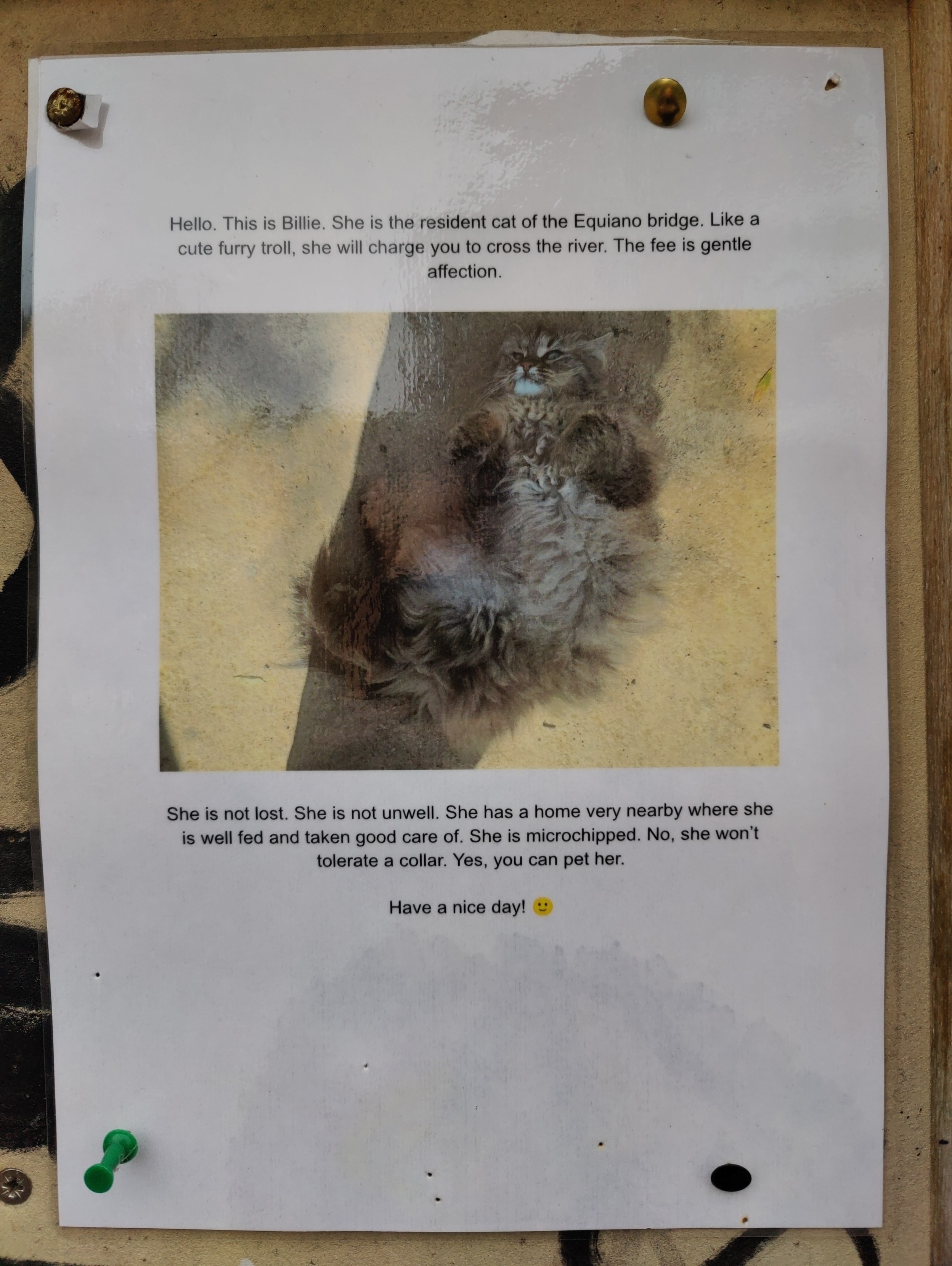 I met a new friend this morning! Her name is Billie and there was a little poster up explaining that she is not lost.