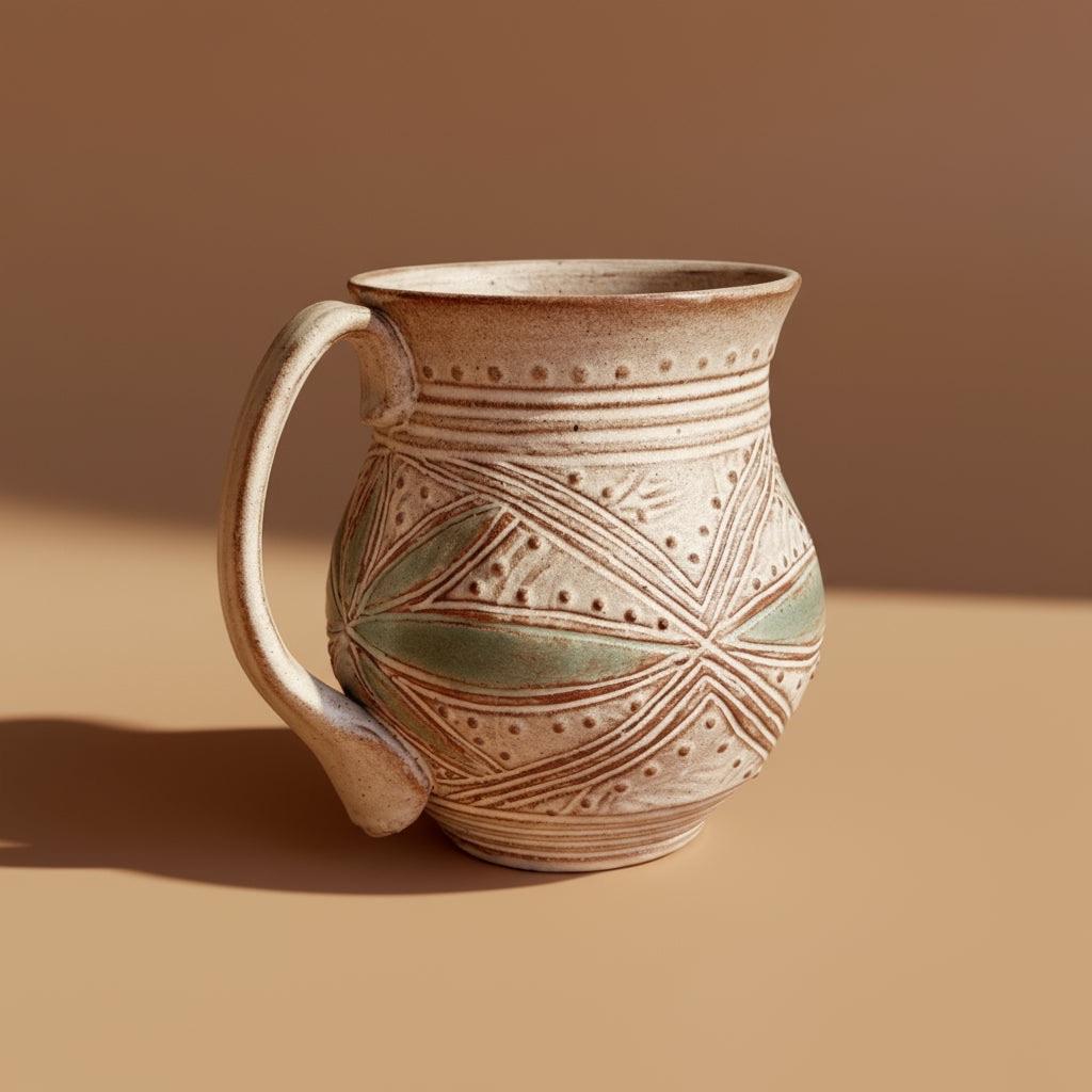 The black on this mug comes from terra sigillata made from a ball of manganese-rich New Mexico clay my friend gave me. After they’re done firing, I lightly sand the exterior of each mug with a fine-grain sandpaper. The handles become smooth and soft to the touch.