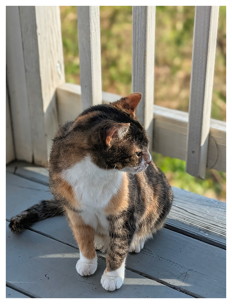 Hanging out on the porch with #CharleneTheCat. It's 70º F with a light breeze, and the pollen's not too bad.