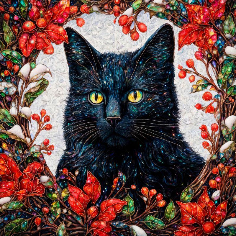 #nationalblackcatday #blackcat #blackcats #catart #catartist #artforsale #mastoart #christmas #christmascards