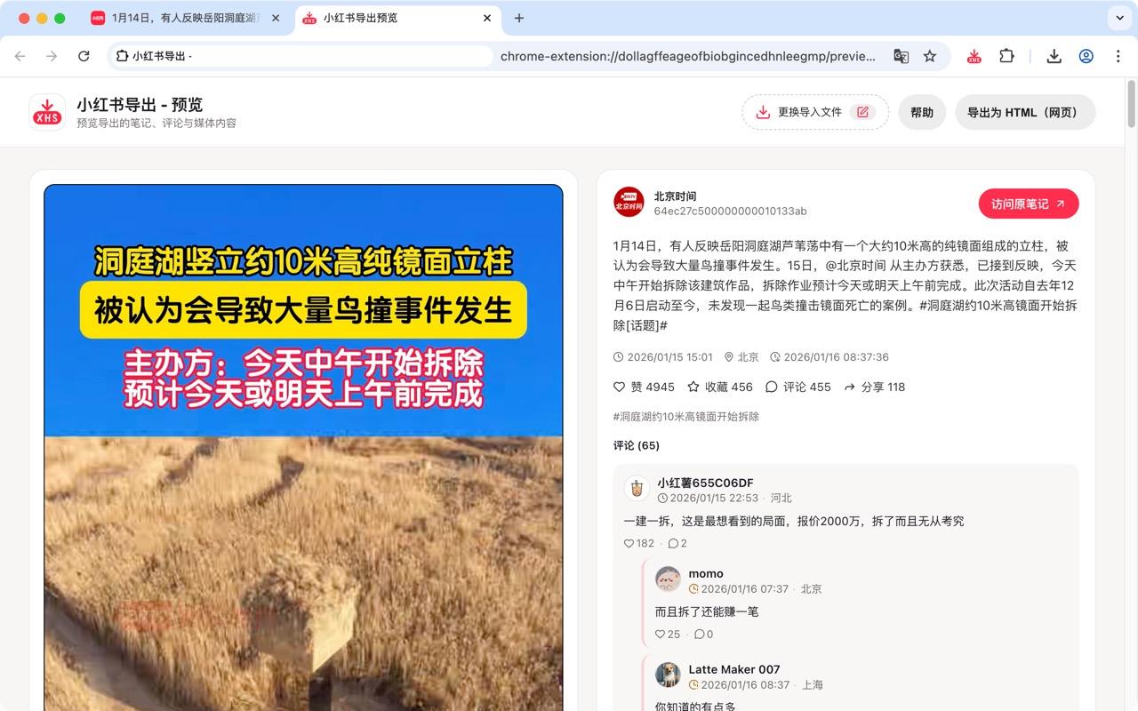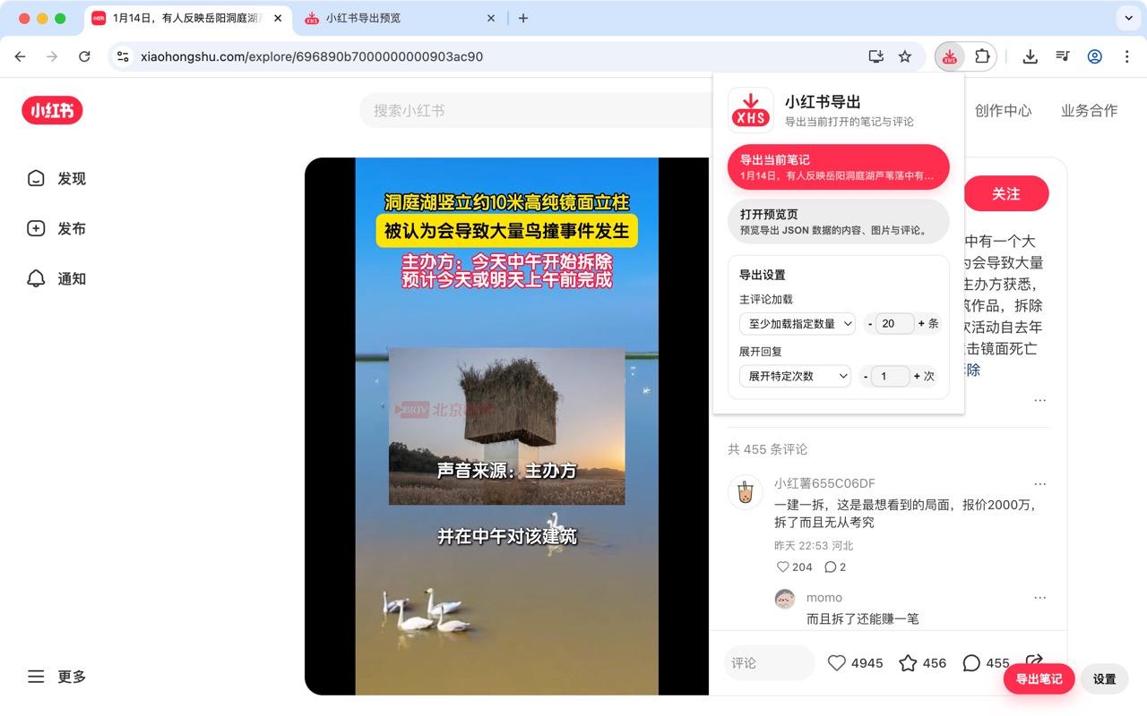 一个【小红书笔记的导出/归档 浏览器扩展】📦