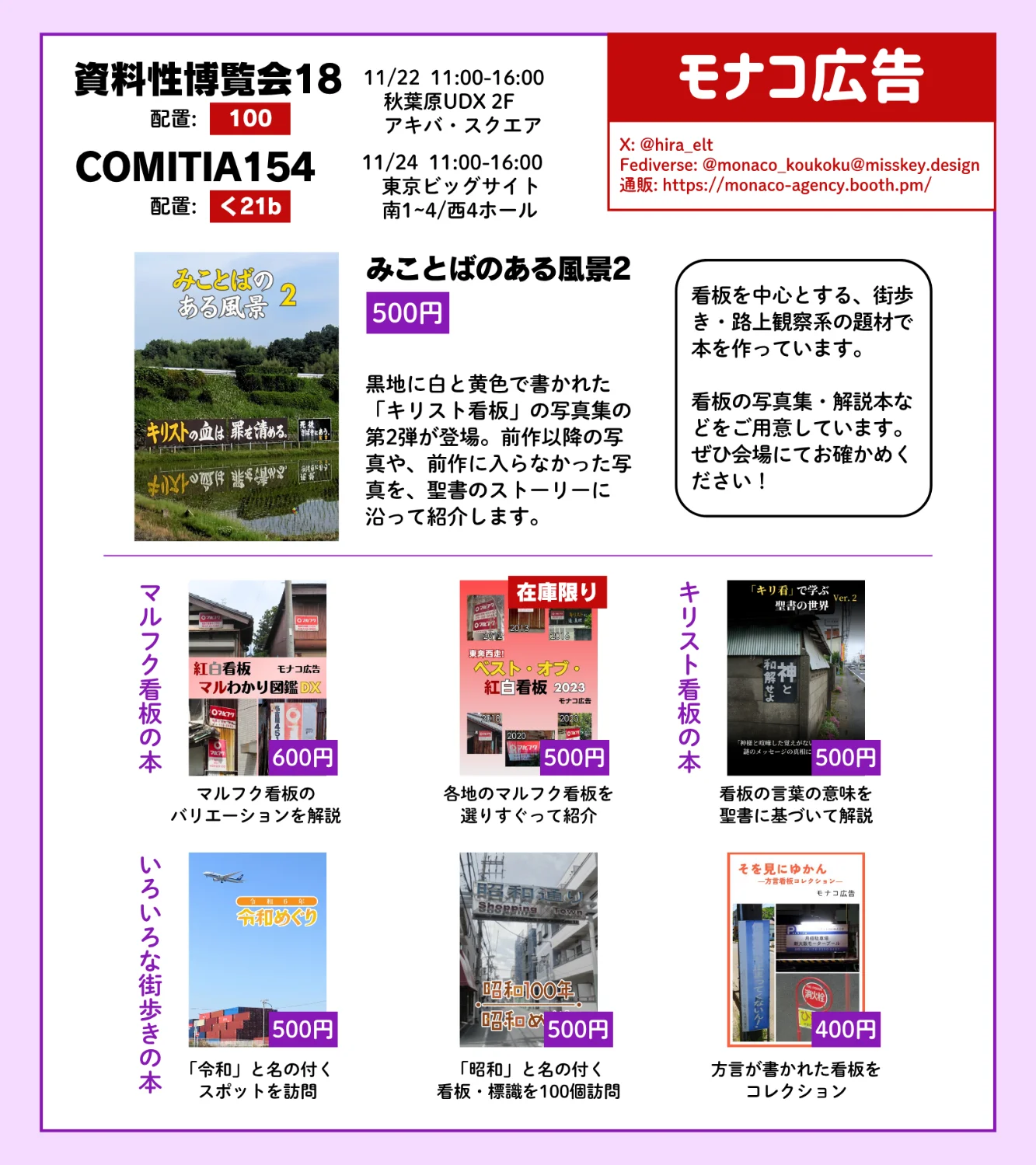 【11/22 資料性博覧会18・11/24 コミティア154 にサークル参加します】