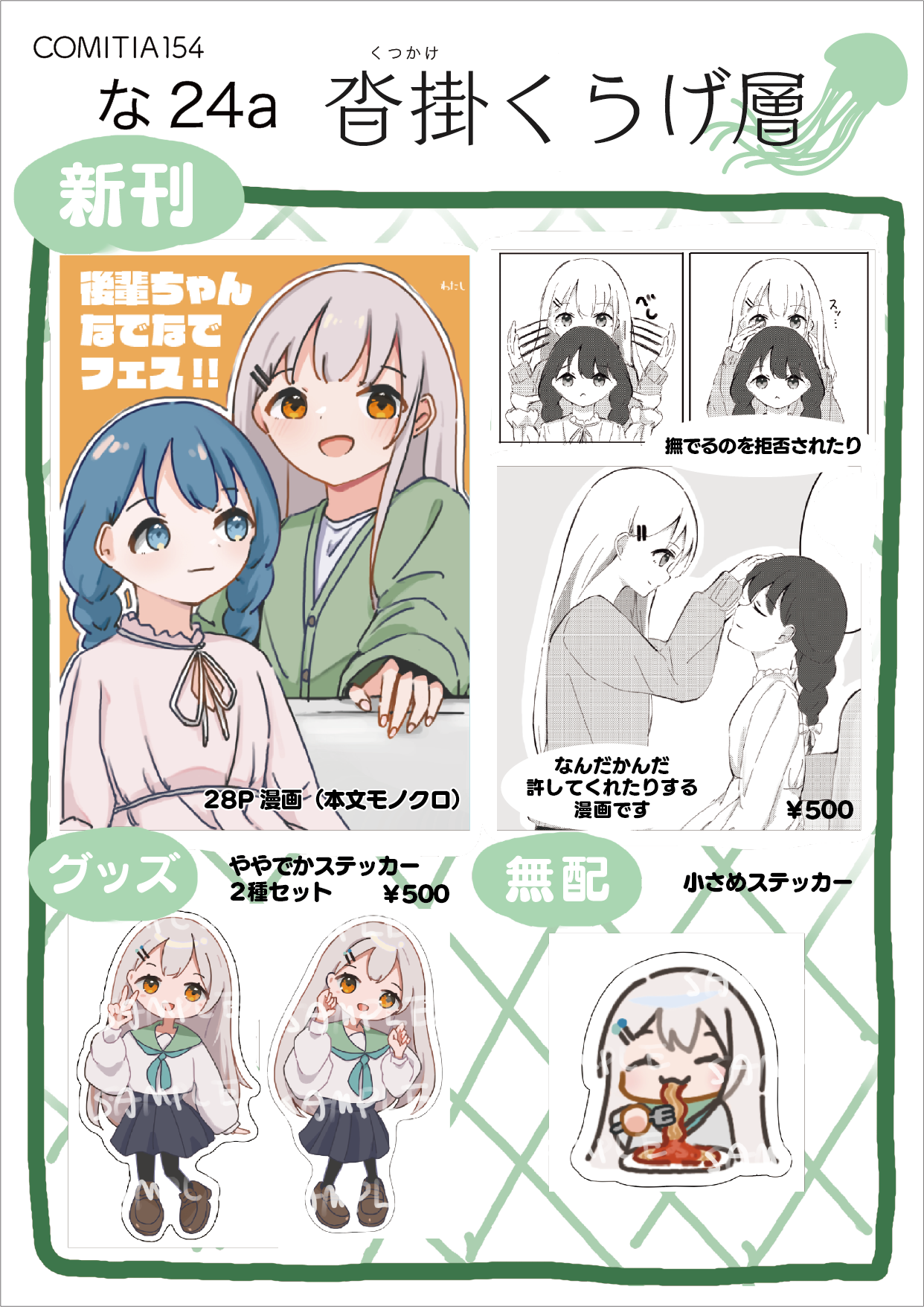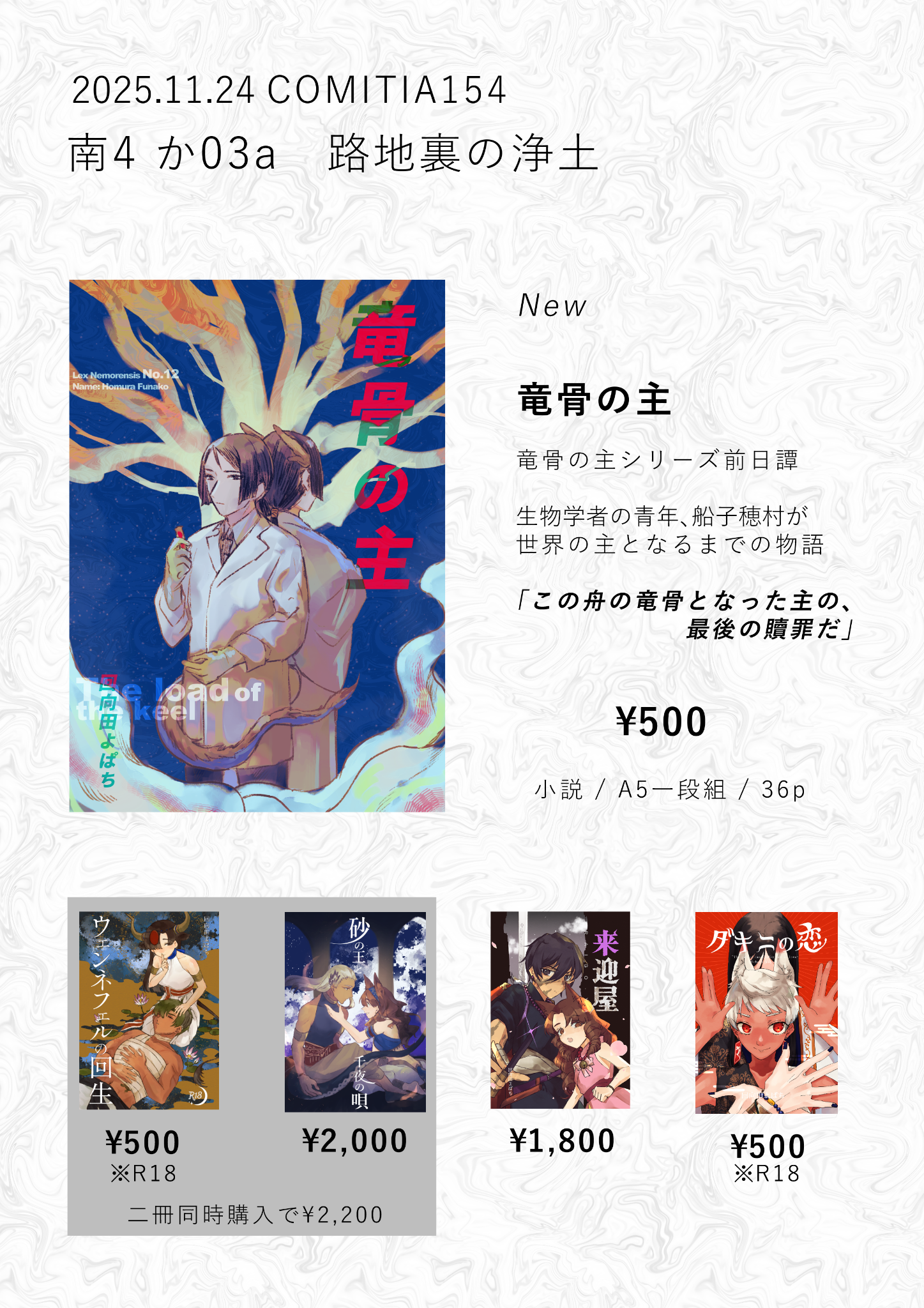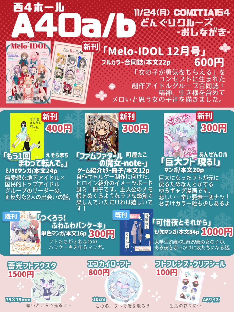 11/24(月) #COMITIA154 のお品書きです! いろいろ出ます よろしくお願いします〜