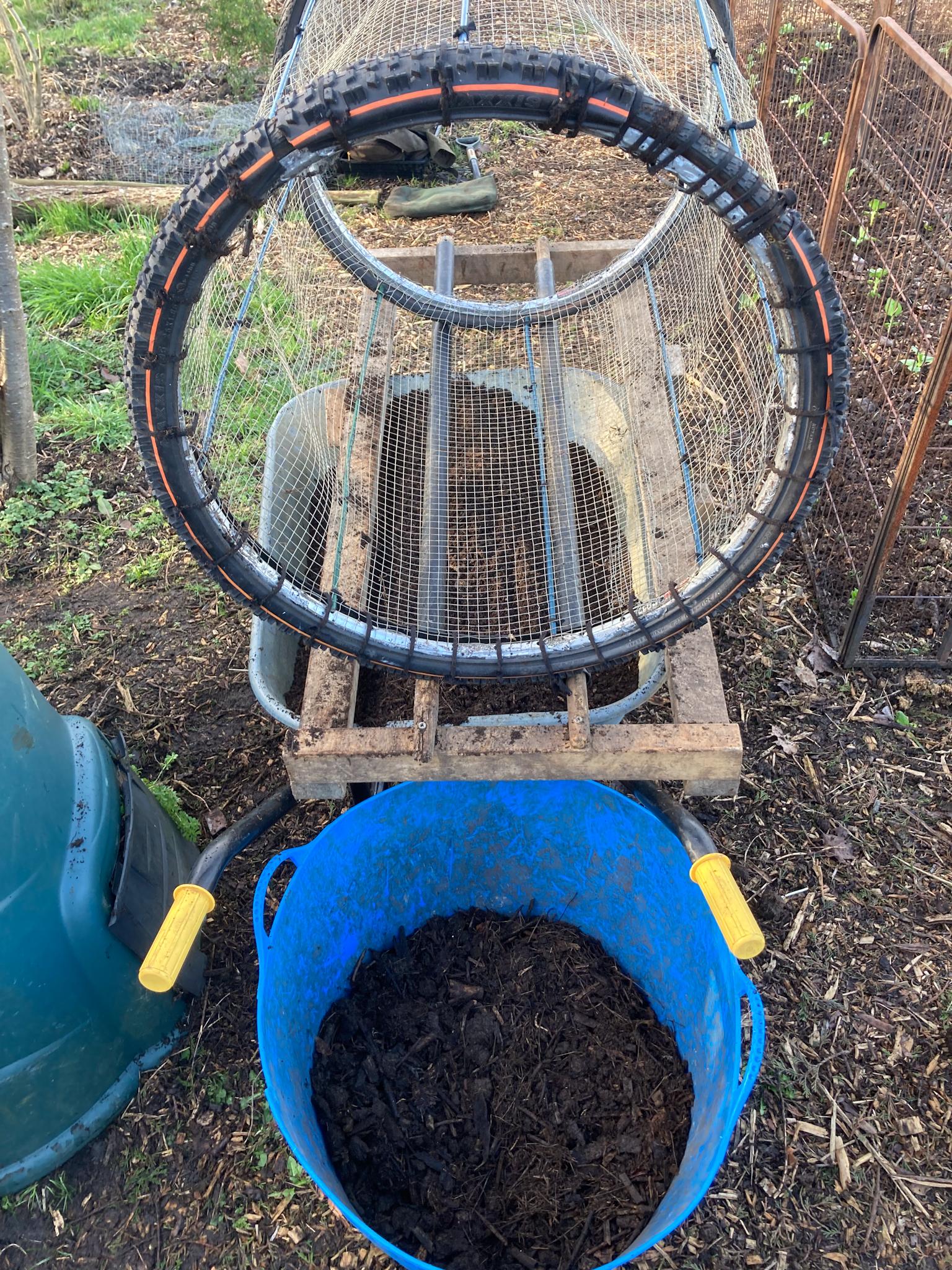 I tried out the trommel. It sieved a wheelbarrow load of compost in no time. #SolarPunk #Gardening #Compost
