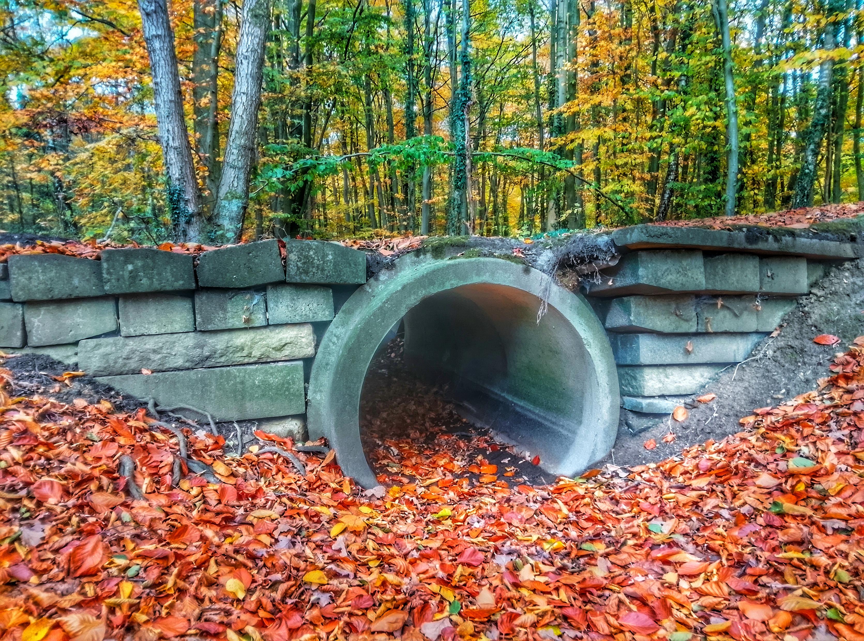 Even an old stone drainage channel can look photogenic in the right setting. Discovered on a walk where the edge of the forest meets farmland.