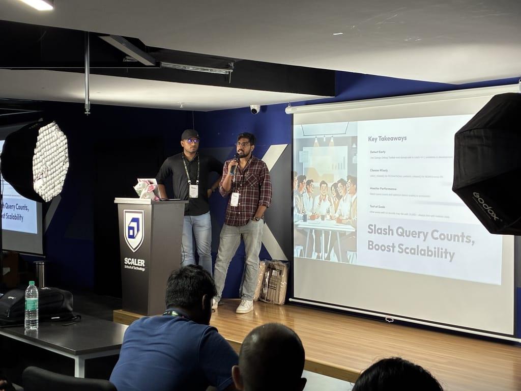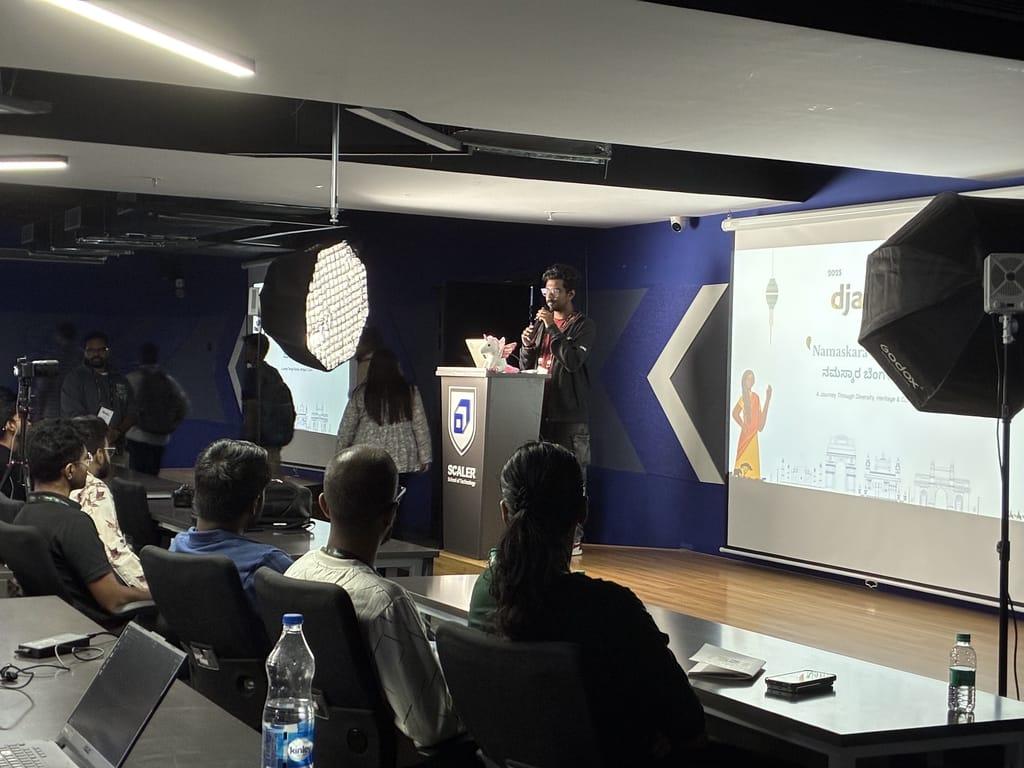 Today we’re at the first ever #DjangoDayIndia ✨🇮🇳✨ at Scaler School of Technology! It’s really special to be at the first edition of a new #Django event, and the crowd here is loving it 💚
