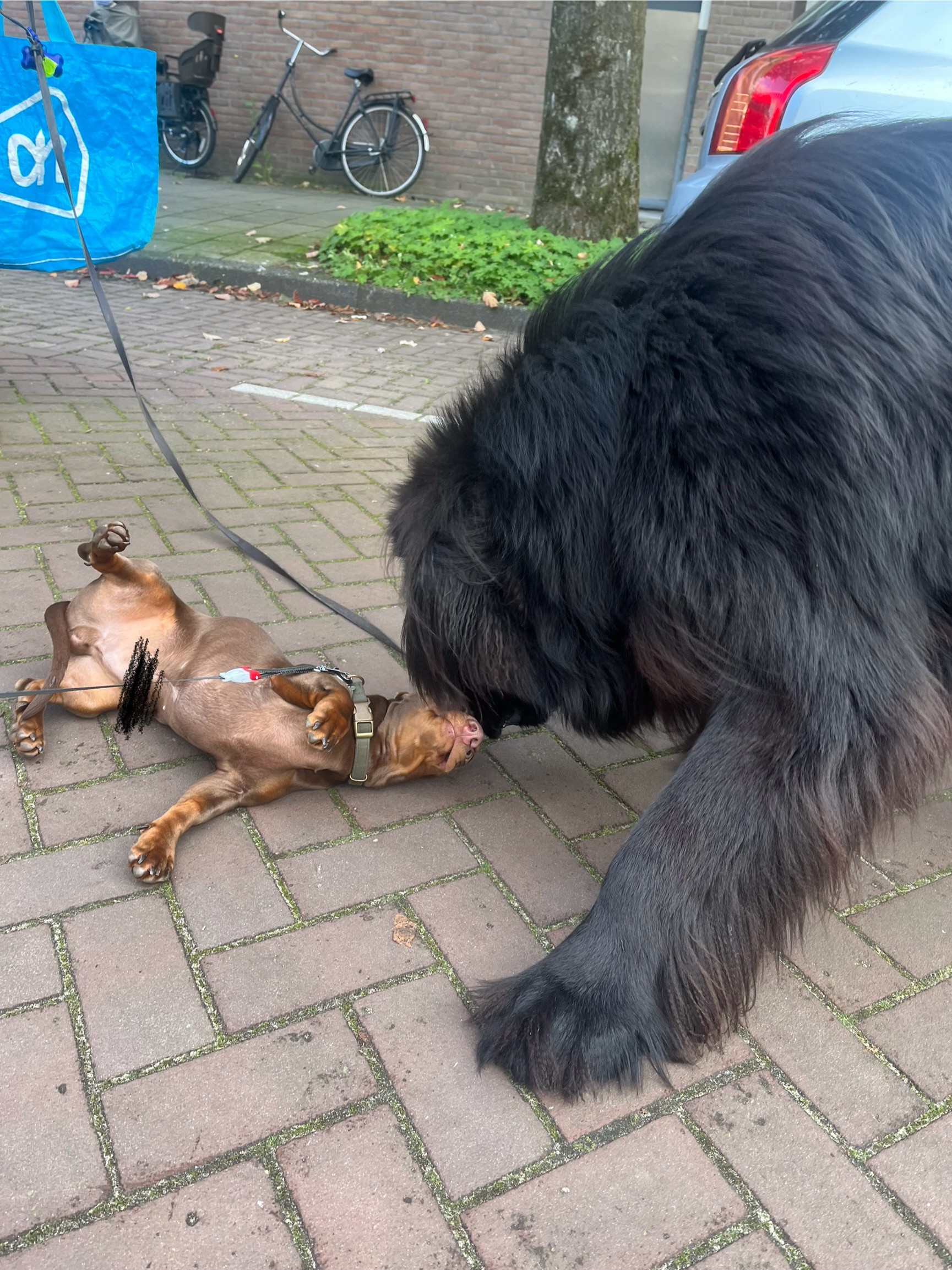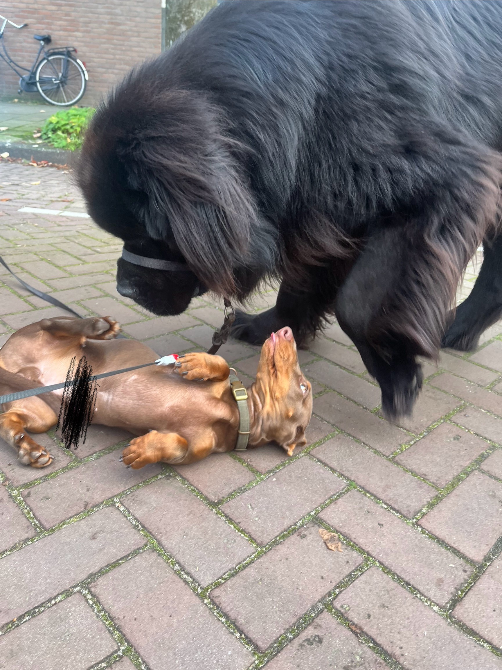 there is a very brave little dog in the neighborhood who I’m pretty sure has a gay crush on Odin #dog #dogs #dogsofmastodon