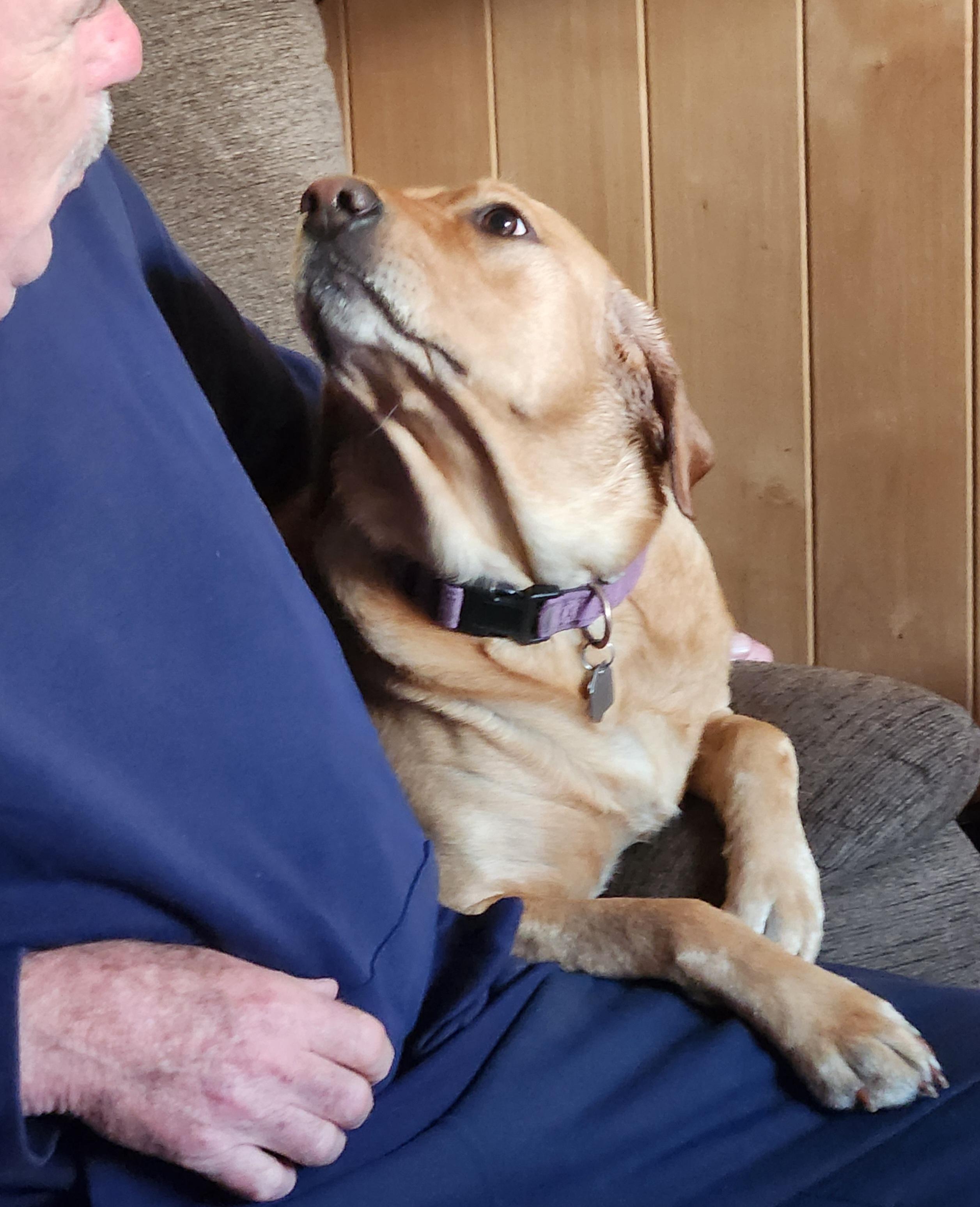 In my happy, slightly spooky place. This dog is so skittish, it warms my heart whenever I can get her to settle in. I’m trying my best not to move and ruin it.