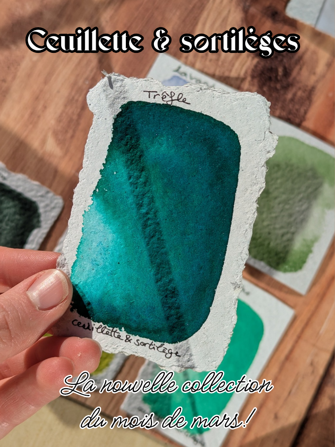 Moi, c'est Aurélie, sorcière des couleurs ! Mon maitre mot : la transparence. Je crée des aquarelles naturelles et éthiques, à partir de pigments locaux, avec soin et respect, pour celleux qui créent avec le vivant.