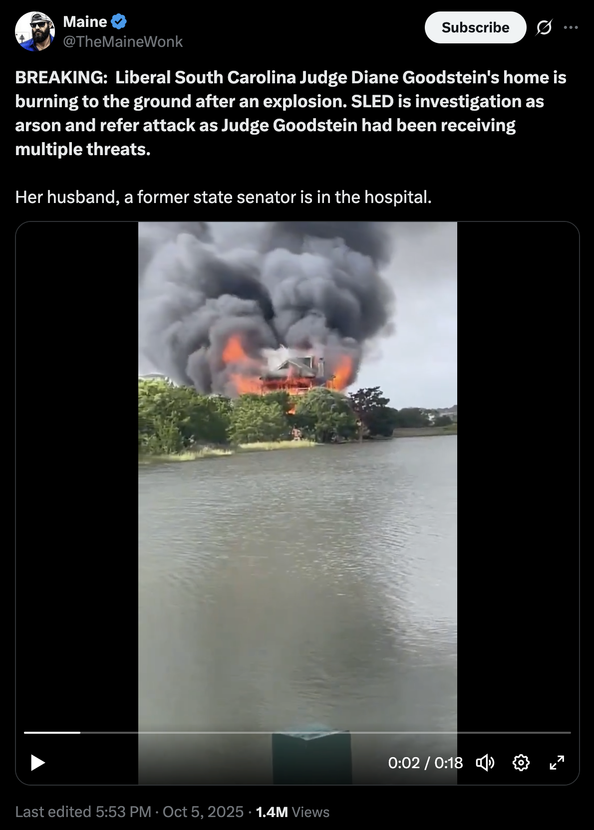 that judge's house just burned to the ground and her husband is in the hospital.