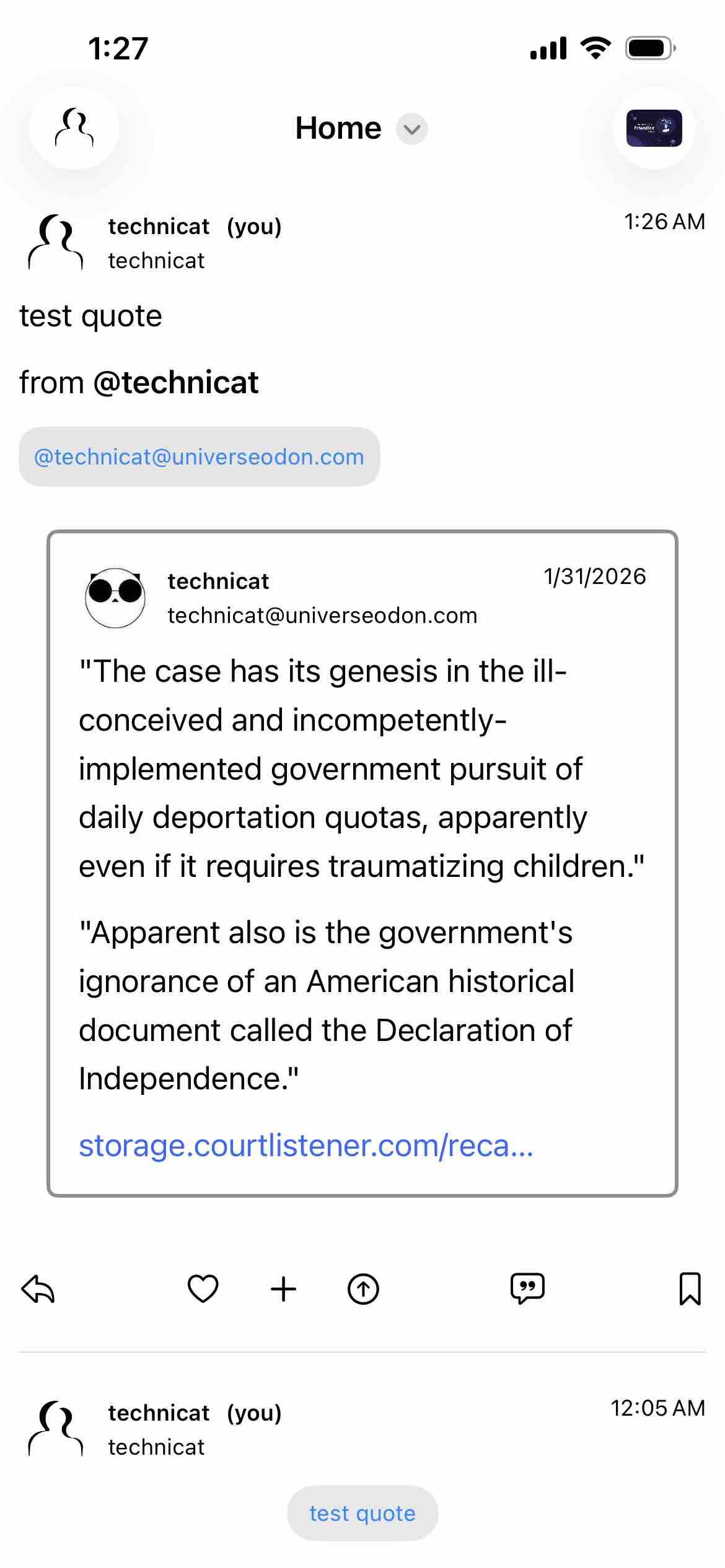 just a status report on #BonfireSocial 1.0.1 support, #Fedicat has basic functionality, can browse, like, boost, follow, bookmark, post without attachments. Avatars only show up sporadically, like after a boost.