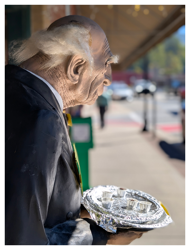 Coming out of the MEN'S, I saw this shot through a dark dining room, to the register up front. The human in the door frame photobombed the pic to great effect, I think! ❤️