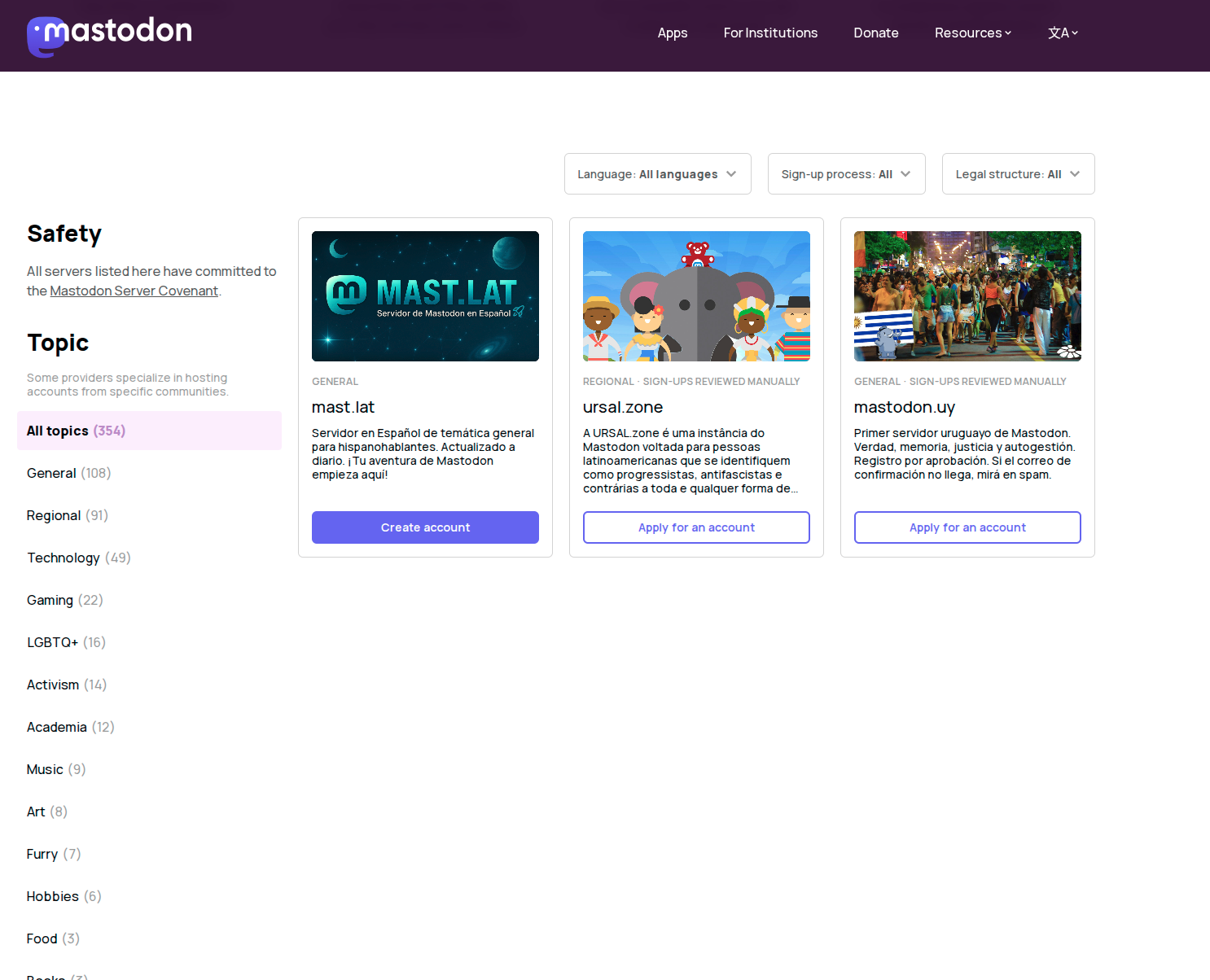 Por que tem tão poucas comunidades sul-americanas listadas no site oficial do Mastodon?