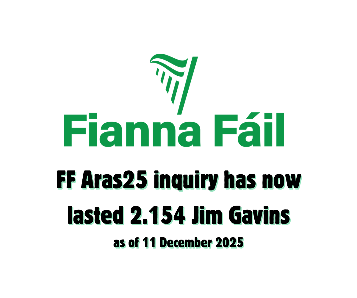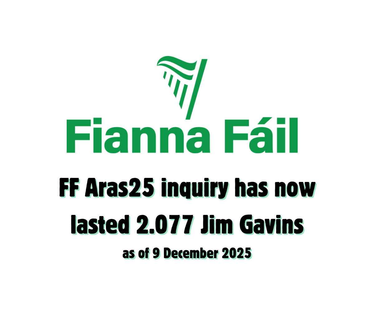 It's Tuesday 9th December. #FiannaFail's #Aras25 inquiry into the #FF presidential election disaster has now lasted for 2.077 #JimGavins.