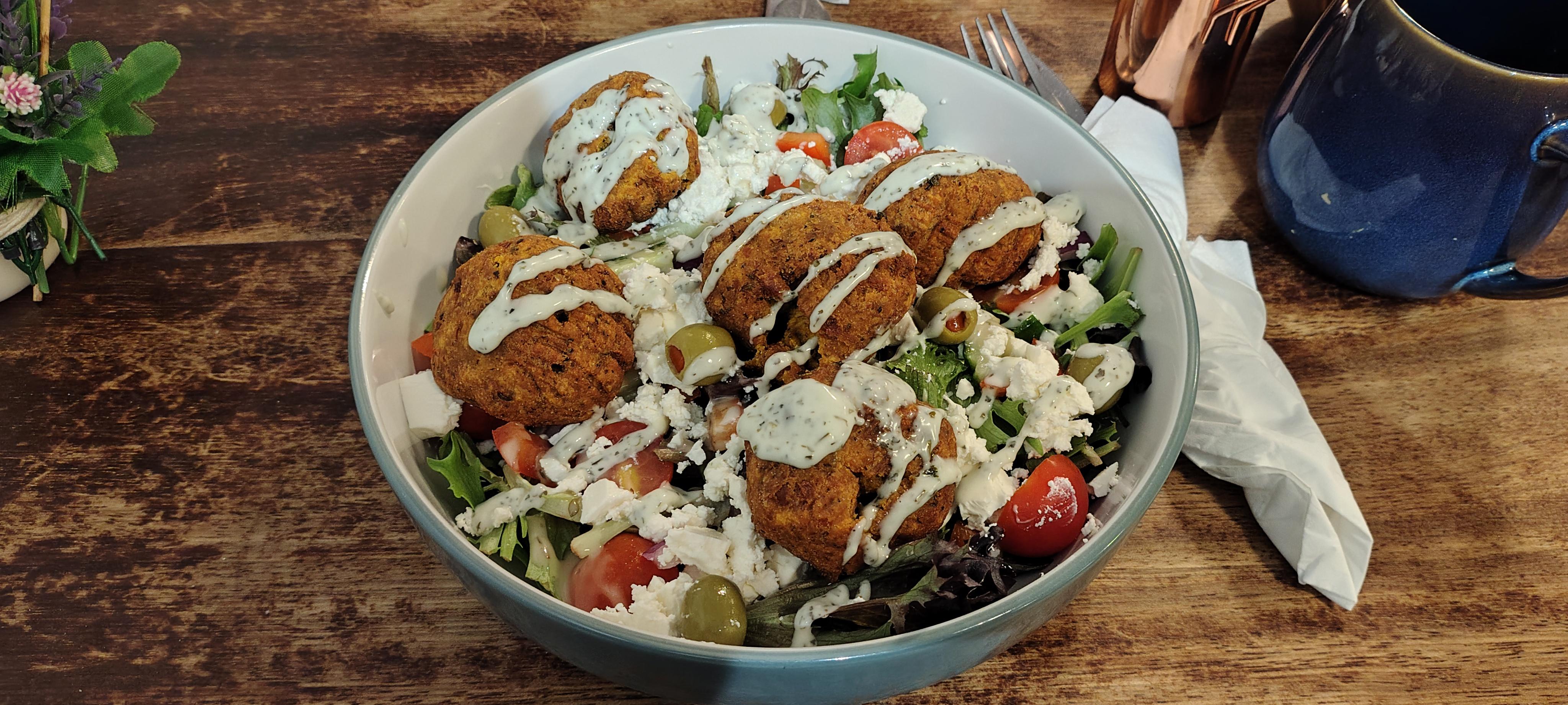 Having lunch at The Hub. When I ordered a Falafel salad bowl I didn't expect this size 😳 looks good though 😋