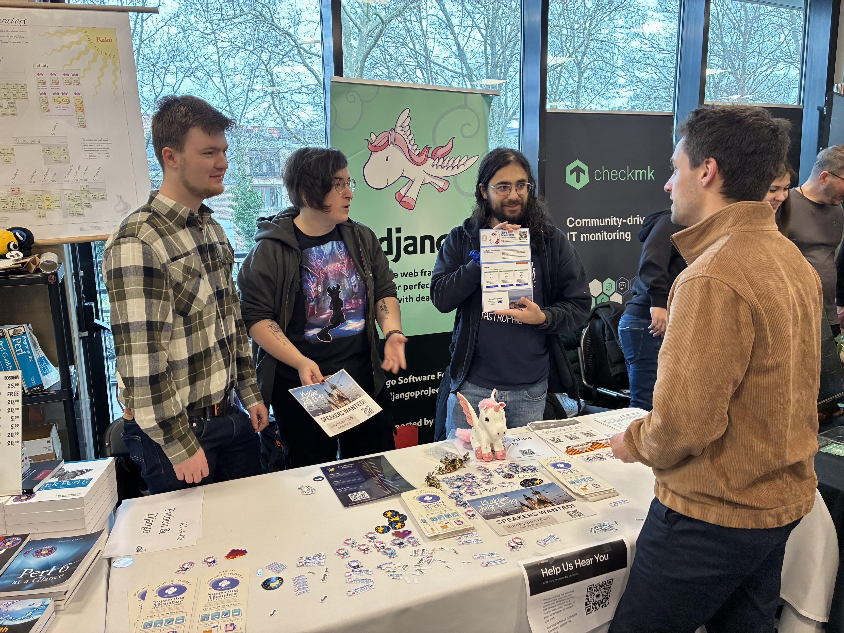 Today we’re at #FOSDEM along with EuroPython Society and the Python Software Foundation ⭐️ thank you to our volunteers staffing our stand!