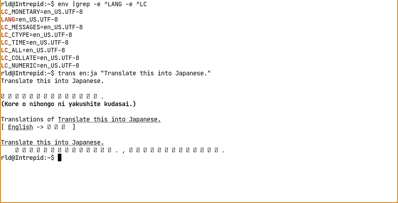 (Emoji works fine, normal latin diacritics seem fine, but Japanese is non-existent. I'm using the same fonts and terminal config as in Linux, and I've tried it in foot (the terminal shown here), lxterminal, and xterm. All the same.)
