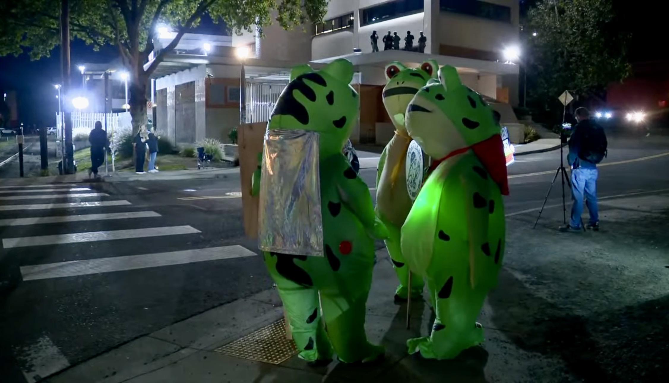 A bee, an eagle, and a unicorn/pegasus walk in front of the ICE Field Office in #Phoenix…