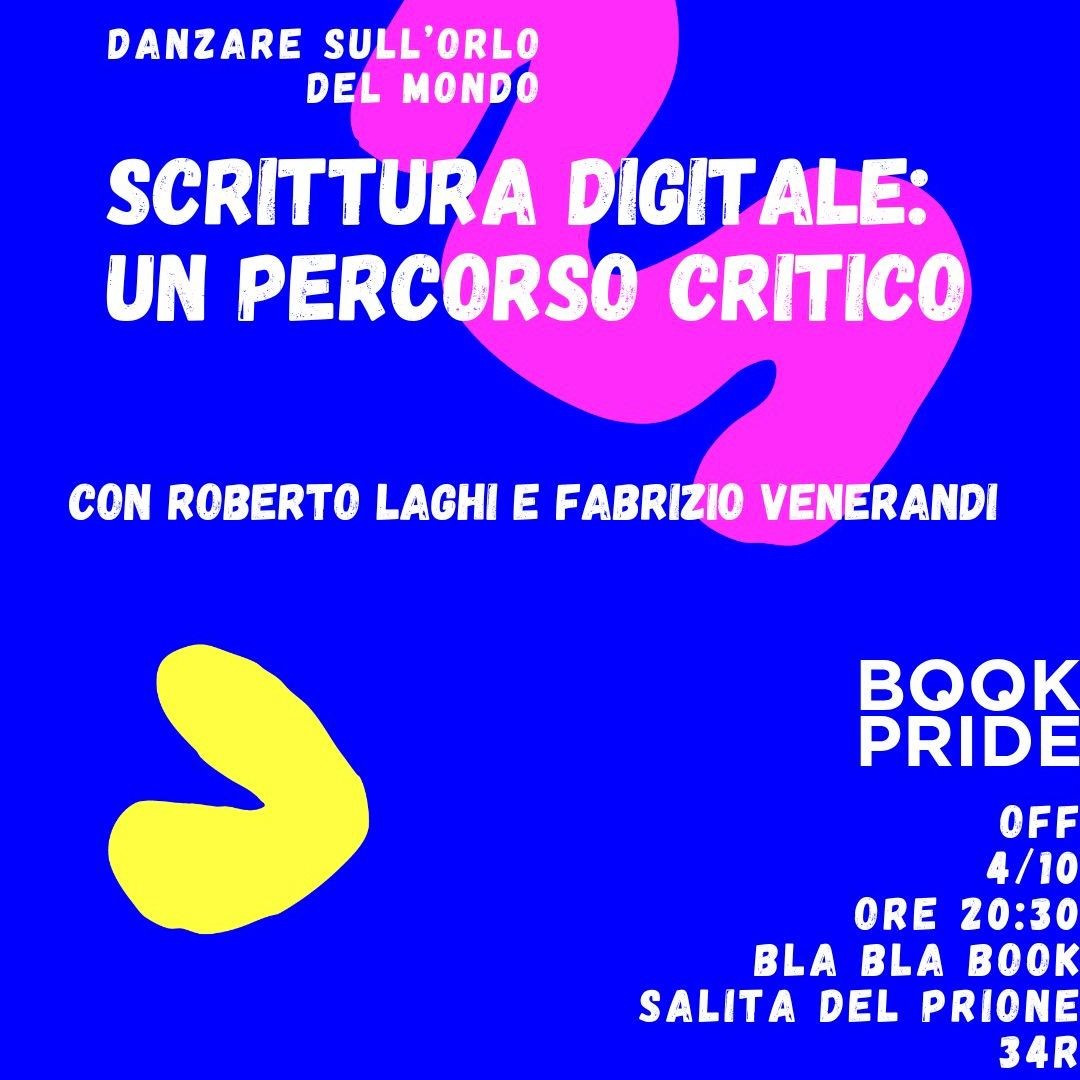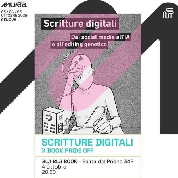 Ricordo a tuttə che sabato sera io e @Fbrzvnrnd parleremo del mio libro "Scritture digitali" alla biblioteca Bla Bla Book a #Genova (salita del Prione 34), alle 20:30.