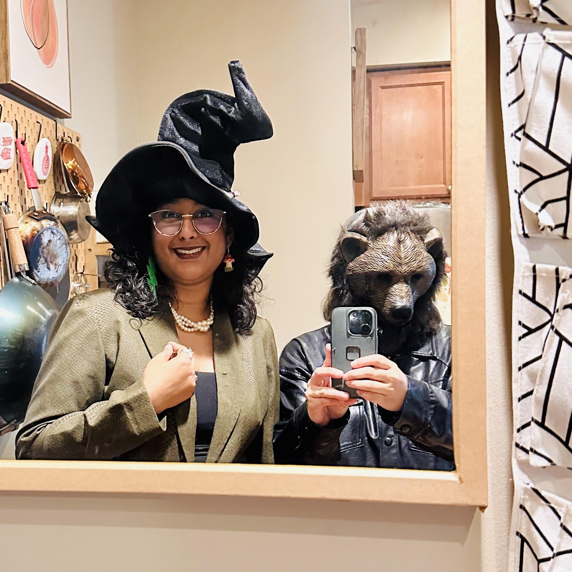 I passed many cute Halloween decorations on my rides, but I had to stop for the witch on a bike decoration and took a selfie. The house is flying a pride flag 🏳️🌈