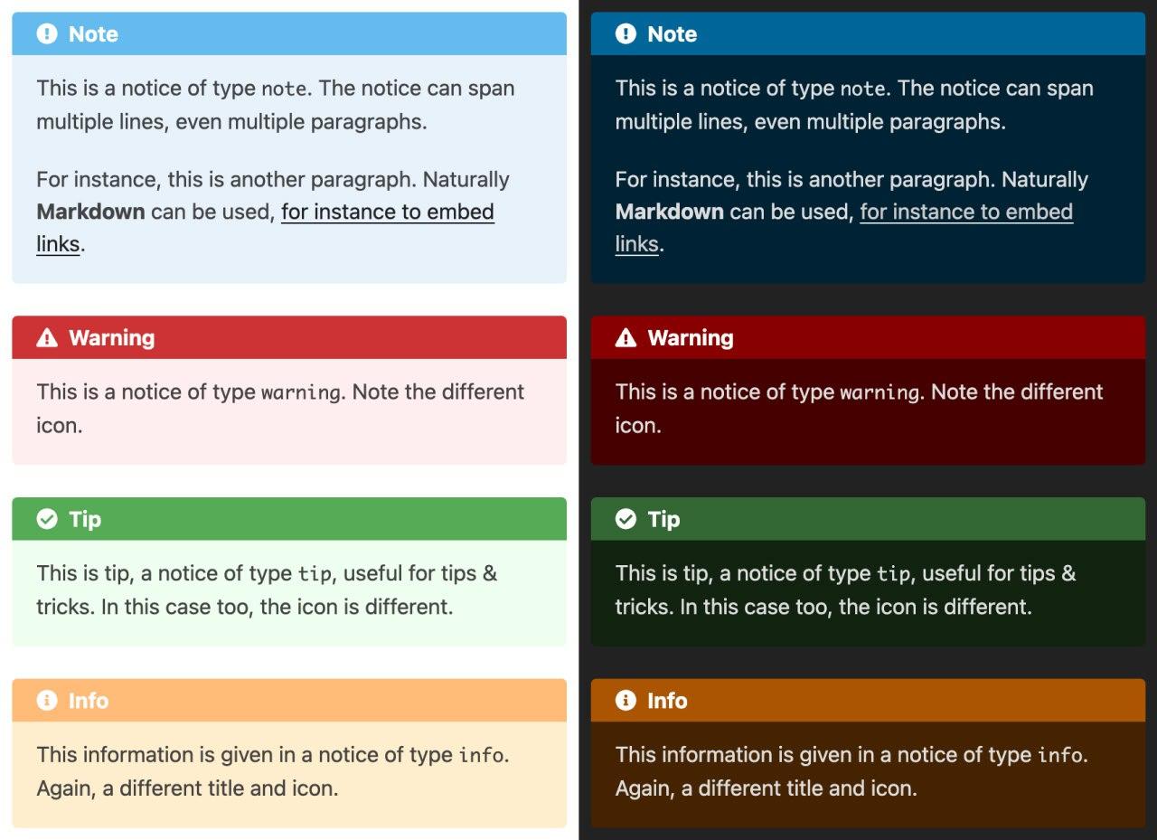 这个项目看起来还挺不错的,作为一个主题使用,可以在文章中插入 notice 块。