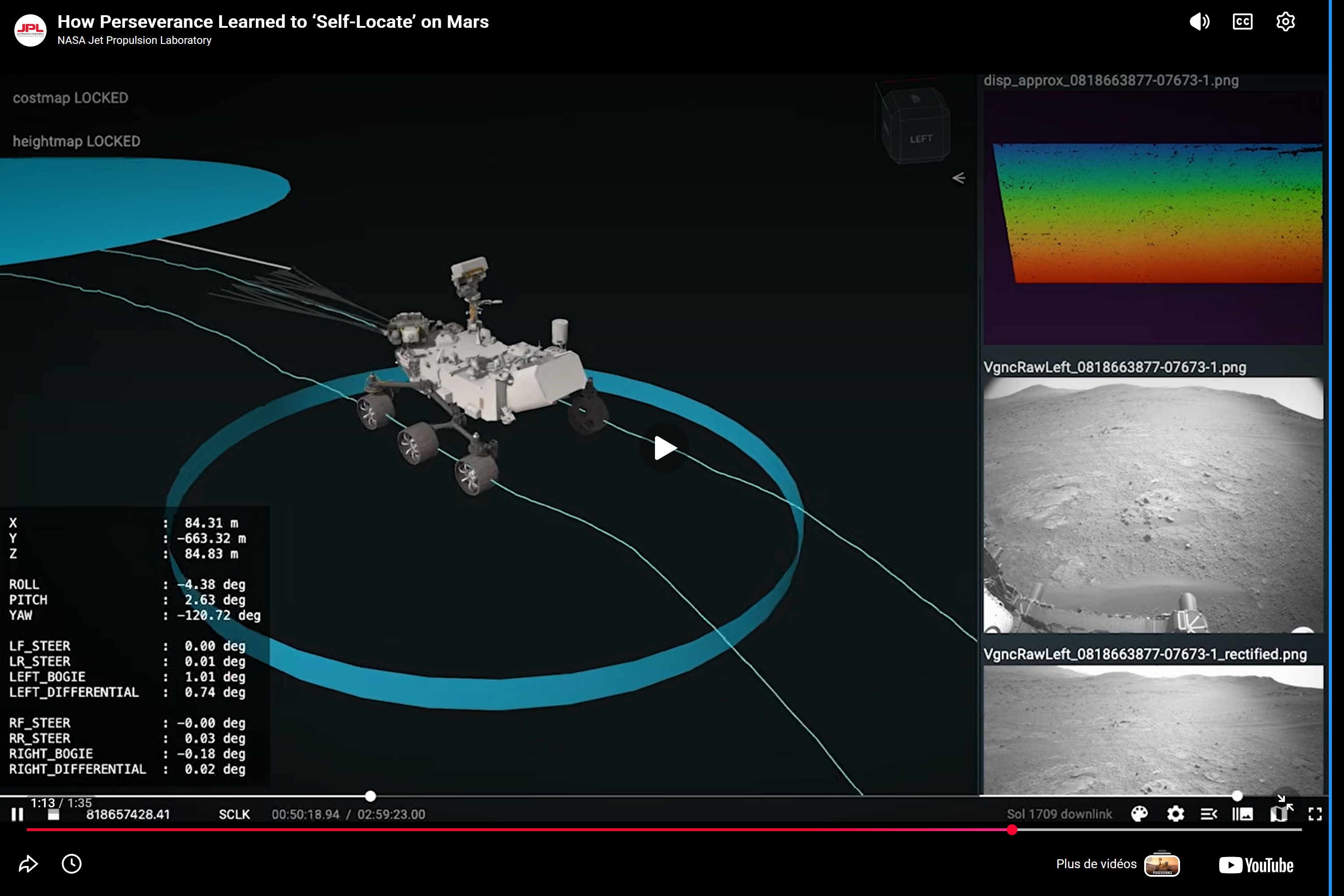 Grâce à une nouvelle technologie baptisée Mars Global Localization fonctionnant sur la base d'un #algorithme de comparaison des #images panoramiques acquises par le rover avec les #cartes topographiques orbitales embarquées, Perseverance est désormais capable de repérer, en moins de 2 minutes, sa #position à la surface de Mars, sans intervention humaine. La précision obtenue est d'environ 25 cm. 👍