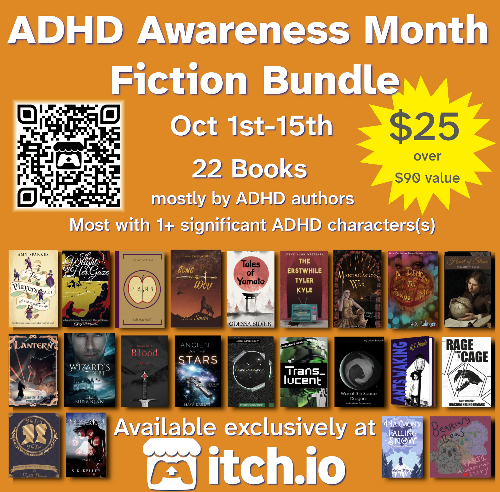 My wife doesn't run a fediverse account, so I'm alerting anyone interested that her new book is part of the itch.io bundle collated to bring awareness of #ADHD in writing for #ADHDAwarenessMonth. There's a whole bunch of different genres included and they're all either written by an ADHD author, or have an ADHD significant character.