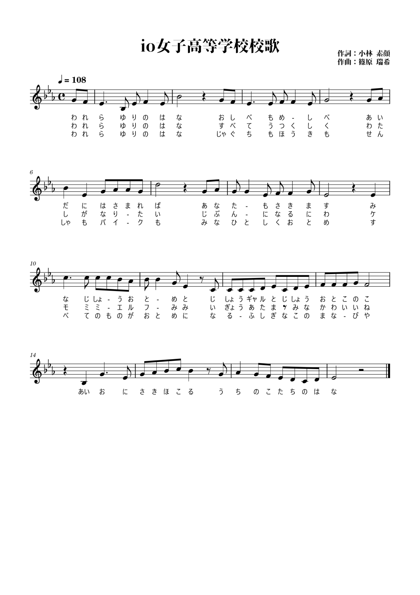【改訂版公開!】去年作らせていただいたio女子高等学校校歌、楽譜に誤りがあったのを修正し、ついでにピアノ譜も作りました! 歌うも良し、ピアノ弾くも良し、みんなで合唱するも良し。是非ご活用ください!