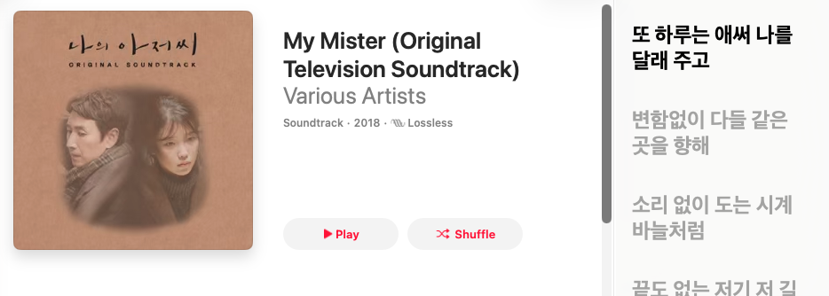 I'm impressed, Apple Music is showing the lyrics for this #kdrama soundtrack (my favorite one, by the way)