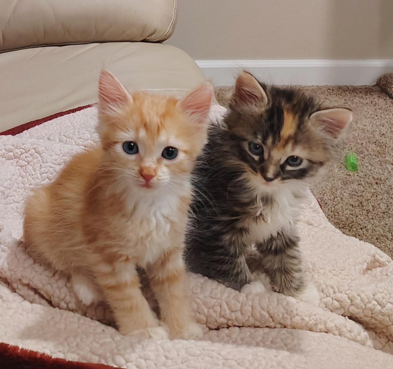 My wife and I have been fostering kittens for quite a while. Our first foster was back in 2009. Even though we have fallen in love with every kitten, we have never kept any of our fosters. Well, that streak ends with this litter. These two fluffballs will be staying with us permanently. The orange tabby boy will henceforth be known as Sugar and the Calico girl will now be Spice.