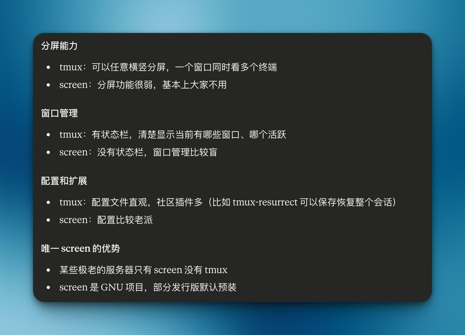 我将从Screen切换到Tmux ()
